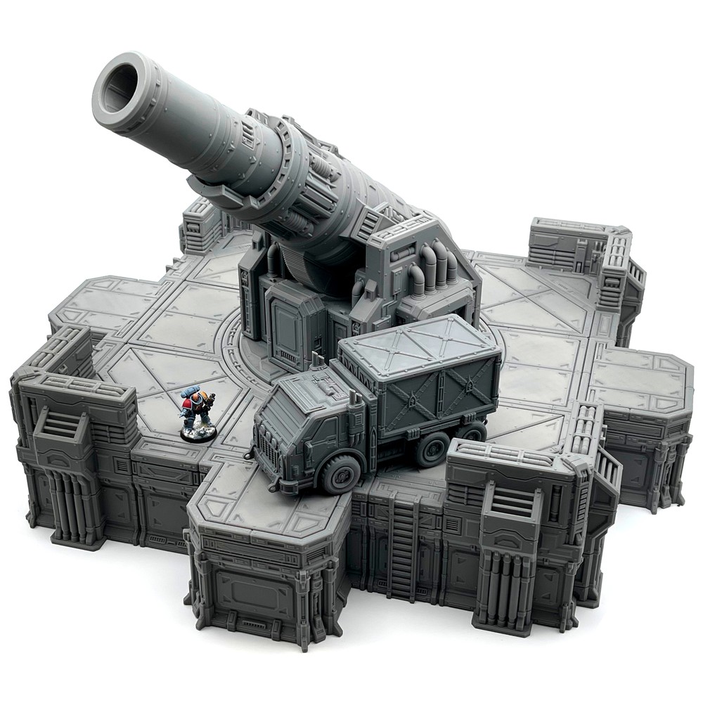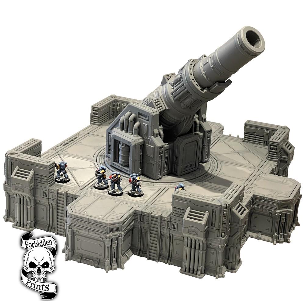 This listing is for one massive artillery cannon and platform. Ideal for scatter terrain/scenery for any 28mm tabletop game. Such as: Warhammer, Warhammer 40K, Necromunda, Dungeons & Dragons, Star Wars Legion, Tabletop diorama, Or any 28mm tabletop game. The cannon for this listing is available on it's own, under the item number 405603283372 and title: Giant Wargaming Artillery Cannon Titan Killer BFG 28mm Tabletop Terrain Scenery The model is unpainted and printed in grey PLA. Miniature and truck not included. Dimensions The walls of this model measures 650mm (L) x 610mm (W) x 160mm (H). The artillery cannon measures 320mm x 320mm at the base and extends between 220mm and 380mm tall, depending on how it is aimed. This model is suitably scaled for 28mm. Accreditation Printed by 3D Central Ltd under a commercial license from Forbidden Prints. Giant Artillery Cannon Platform Titan Killer BFG 28mm Tabletop Terrain Wargaming This listing is for one massive artillery cannon and platform. Ideal for scatter terrain/scenery for any 28mm tabletop game. Such as: Warhammer, Warhammer 40K, Necromunda, Dungeons & Dragons, Star Wars Legion, Tabletop diorama, Or any 28mm tabletop game. The cannon for this listing is available on it's own, under the item number 405603283372 and title: Giant Wargaming Artillery Cannon Titan Killer BFG 28mm Tabletop Terrain Scenery The model is unpainted and printed in grey PLA. Miniature and truck not included. Dimensions The walls of this model measures 650mm (L) x 610mm (W) x 160mm (H). The artillery cannon measures 320mm x 320mm at the base and extends between 220mm and 380mm tall, depending on how it is aimed. This model is suitably scaled for 28mm. Accreditation Printed by 3D Central Ltd under a commercial license from Forbidden Prints. War Scenery Gothic Sanctuary Collection Forbidden Prints War Scenery Dristrict 1919 Collection Scatter Terrain Grimdark Scenery/Terrain Fantasy Scenery/Terrain