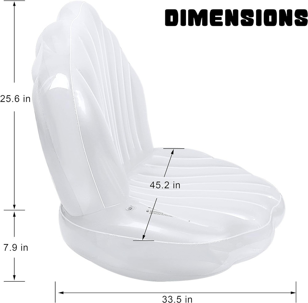 Product Dimensions: 45.2"l X 33.5"w Age Range (description): Ideal For Kids Over 3 Years Old. Weight Limit: 2e+2 Pounds Item Form: Giant Clam Shell Recommended Age Range: 3+ Years Material: Polyvinyl Chloride Type: Giant Pool Float Size: Large UPC: Does not apply Item Package Dimensions L X W X H: 10.24 X 8.23 X 3.5 Inches Shape: Shell Brand: Unbranded Item Dimensions Lxwxh: 45.2 X 33.5 X 0.1 Inches Color: White gtin13: Does not apply Package Weight: 1.36 Kilograms