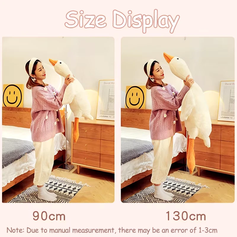 Product Information Commodity material: Soft Plush & PP cotton Condition:100% Brand New Size:90/130/160/190cm Color: as picture Packaging: 1pc in one OPP bag description Adorable design: The Cotton Goose Stuffed Animal is designed to look like a cute duck, kawaii plushies making it a great addition to any room. Light and portable goose doll: The 20 Inch size fits in your hand! It is lightweight and easy to carry around, so it can be taken along on any adventure. A great size for the little one! Soft and comfortable: Made from high-quality cotton, this plush cushion is soft and comfortable, perfect for snuggling or sleeping. Ease work fatigue and give you a relaxing moment. Versatile: The Goose Stuffed Animal can be used as a plush toy, cushion, or pillow, you can squeeze the soft plush everywhere, every time! Great gift: This giant plushie makes a great gift for kids, friends, or anyone who loves cute and cuddly toys. Making it a great choice for kids, friends, and anyone who loves cozy and comfortable things!