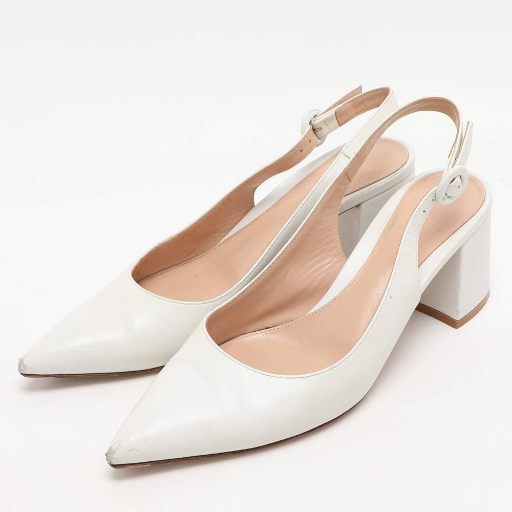Our eBay Store About Us Contact Us Add to Favorite Sellers Gianvito Rossi White Leather Slingback Pumps Size 375 These white leather slingback heels by Gianvito Rossi are exquisite. Impeccably crafted from leather, they offer both style and comfort. The chic buckle closure provides a secure fit, while the sophisticated design ensures they complement you in any setting. Product Details Brand Gianvito Rossi Color White Includes The Luxury Closet Packaging Outsole Length 26 cm Outsole Width 8 cm Size EU 37.5 (US 7/UK 4.5) Certified by The Luxury Closet This item has gone through a detailed authentication process overseen by our experts. We offer a lifetime guarantee of authenticity on all our items. How We Check The in-house team of experts at The Luxury Closet is highly trained to verify the authenticity and the condition of the luxury products. They ensure that only 100% authentic items are put on sale.The evaluation process is unique with its own mix of assessment criteria and differs according to the category. Each item is evaluated based on the following combination of hallmarks, hardware, stitching, symmetry, material, craftsmanship, stamping, codes, hologram stickers, and packaging. Our authenticators also check if the items have been modified or amended (e.g., aftermarket diamonds, replaced batteries, repaired bags, etc.) International Buyers Import duties, taxes and charges are not included in the item price. These charges are the buyers responsibility. Please check with your country’s customs office to determine what these additional cost will be prior to buying.