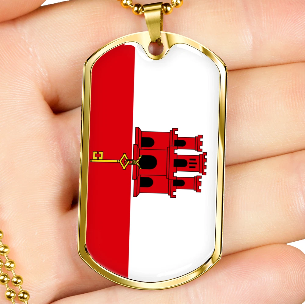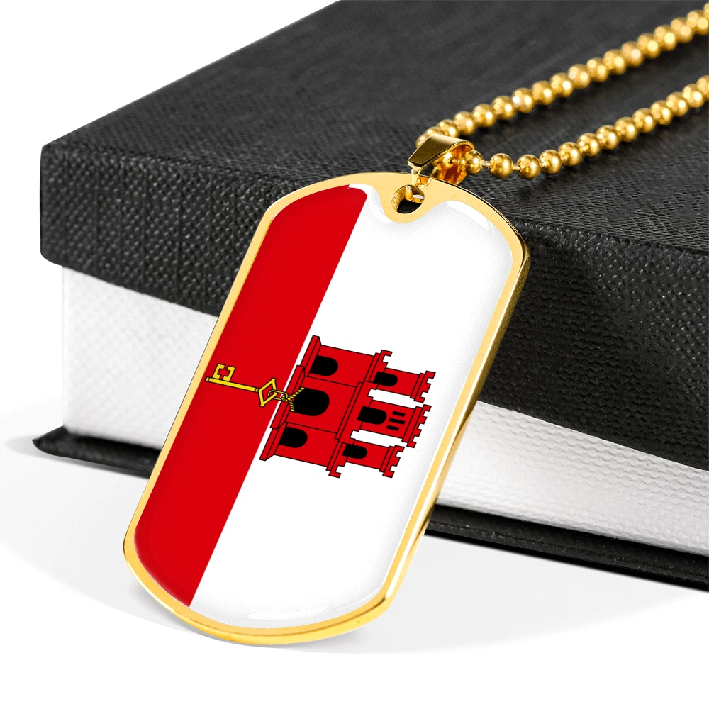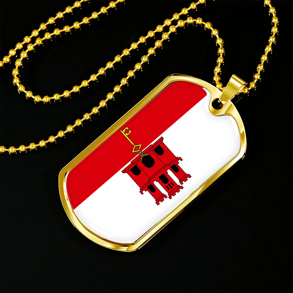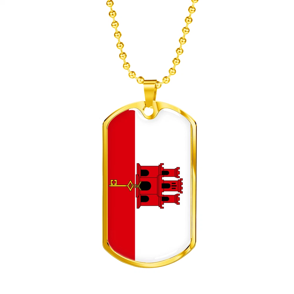 Gibraltar Flag Necklace Stainless Steel or 18k Gold Dog Tag 24" Chain
