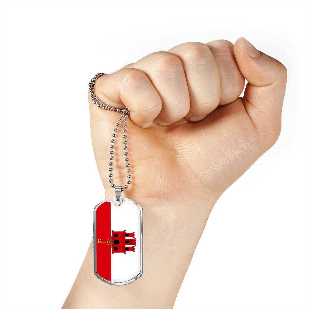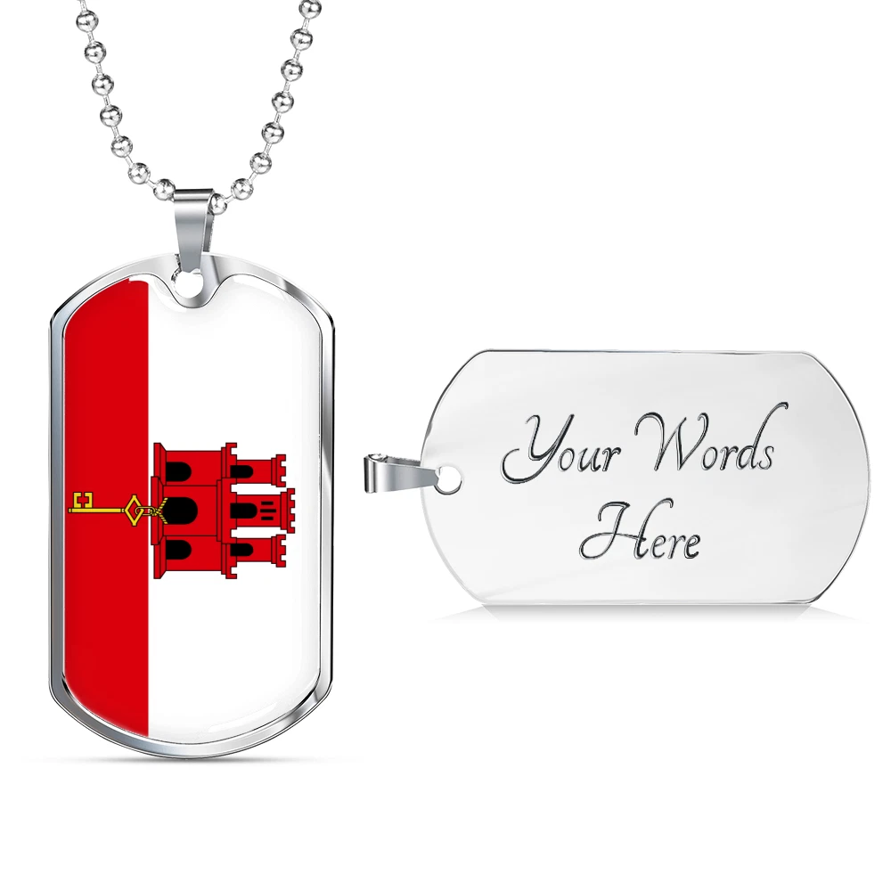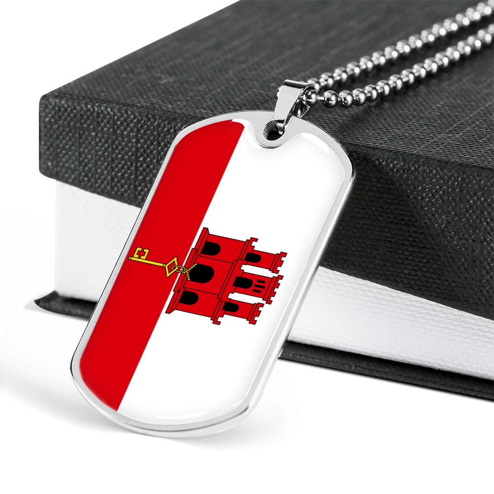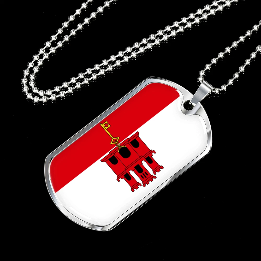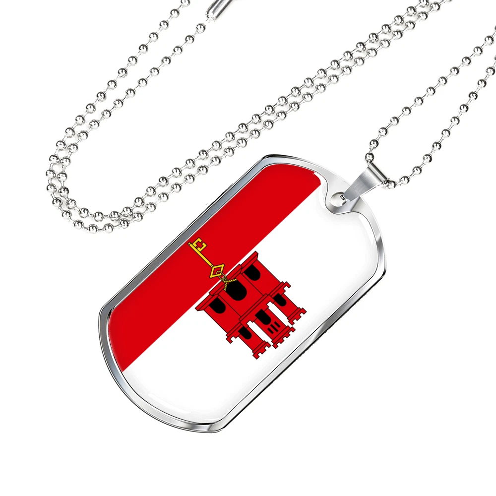 Gibraltar Flag Necklace Stainless Steel or 18k Gold Dog Tag 24" Chain