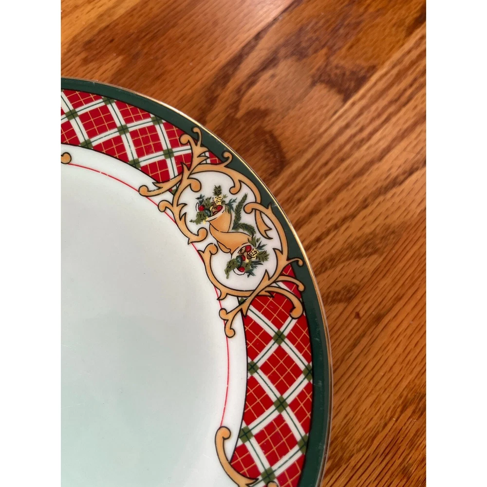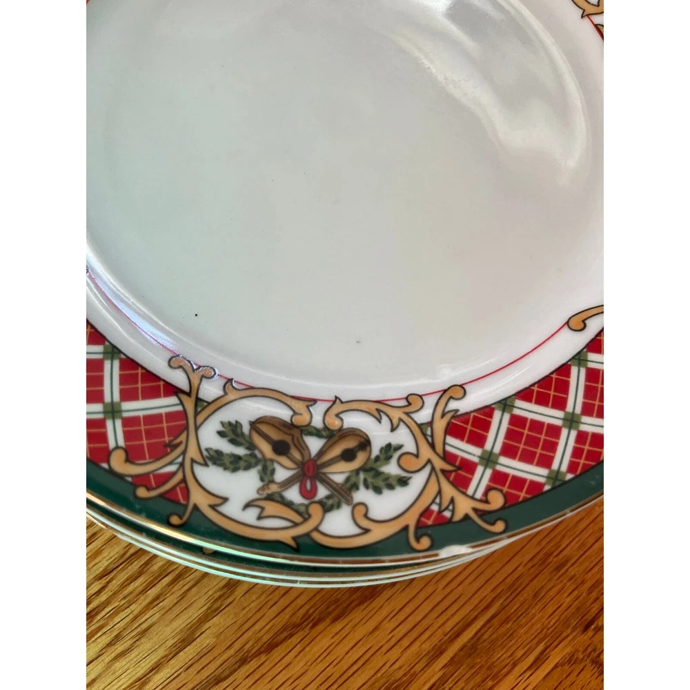 Gibson China set of 4 8" Salad/dessert plates Windsor Plaid/Huntsman RARE