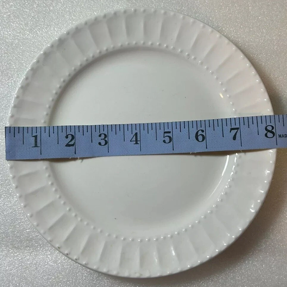 Gibson Everyday Regalia White Salad Or Dessert 8in Plate 10045448 Replacement This plate is in excellent condition with no chips or cracks. Please see photos for details. Please let me know if you have any questions. I use recycled materials in shipping whenever possible. *Plate Stand not included. Measurements are approximate. Non smoking home.
