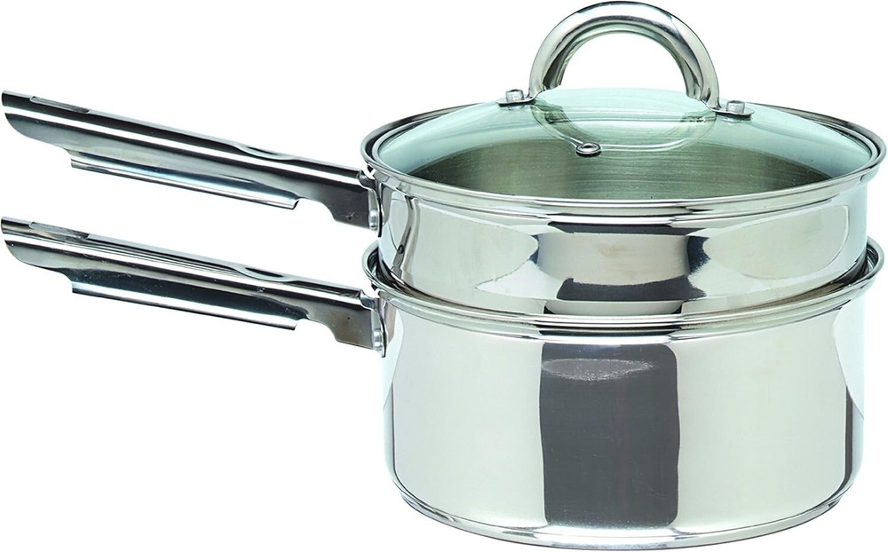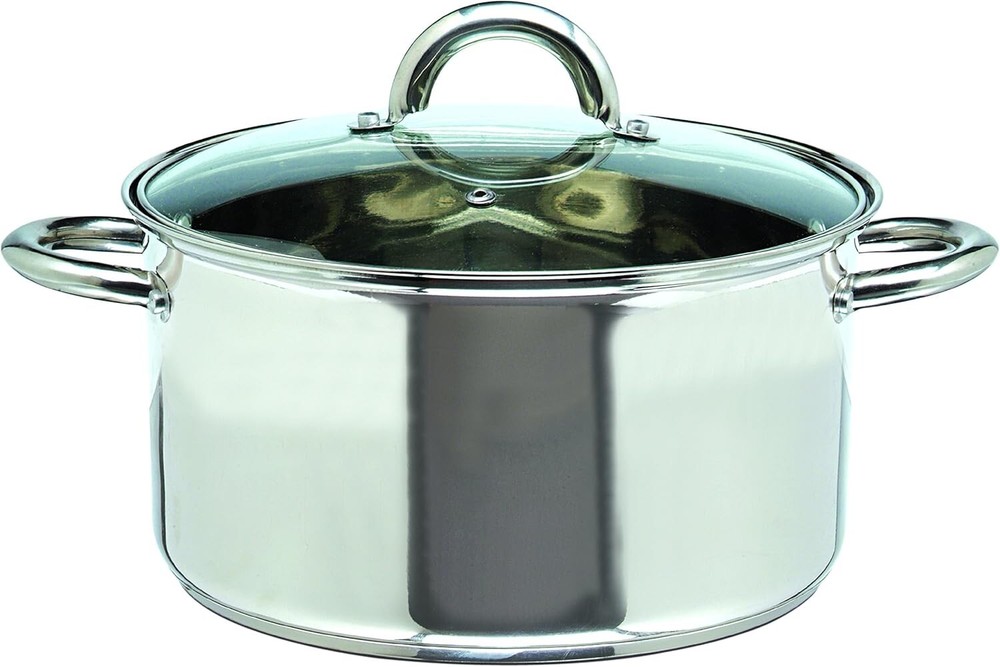 One-piece set consists of 3 9-Quart covered fry pan 5 7-Quart covered Dutch oven 3-quart steamer 2 9-Quart covered sauce pan 1 4-Quart covered sauce pan slotted turner serving Spoon and pasta server Stainless steel body with aluminum encapsulated in the base Mirror polish finish complements any kitchen Tempered glass provides safe viewing while cooking Dishwasher-safe