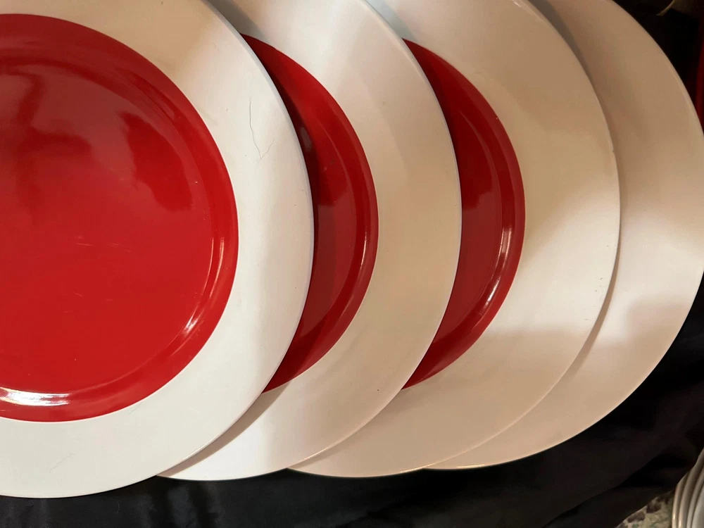 Gibson Home Salad Plates (3) total of 3 Stoneware 8" Wide Wht Rim Excellent Condition Fair Safe Shipping Microwave, OVEN & Dishwasher Safe
