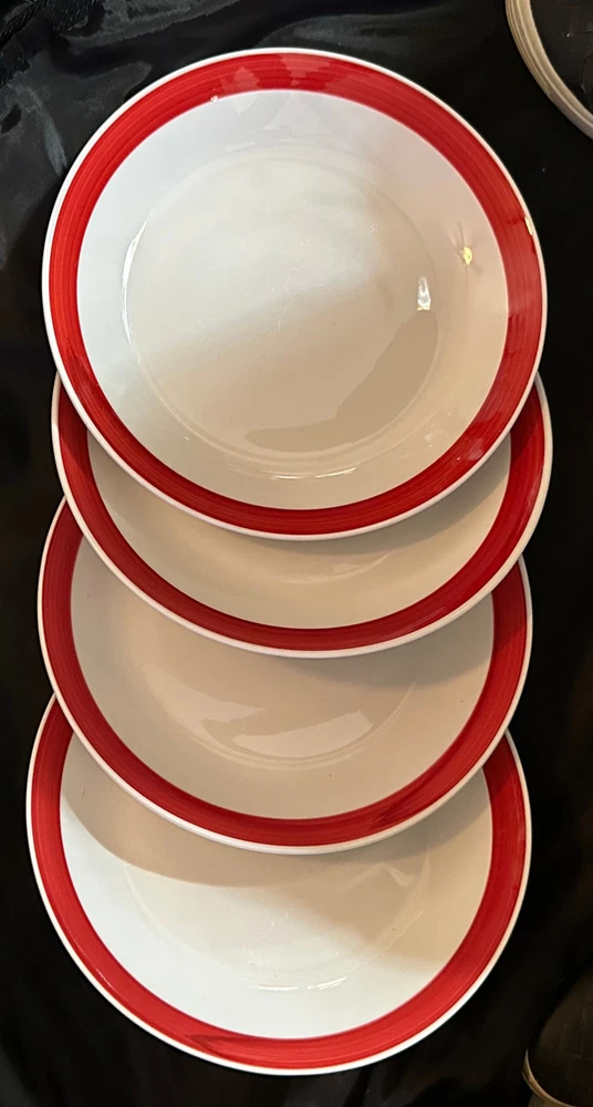 Gibson Home Dinner Plates (4) Stoneware 9-3/4 " Good Condition slight wear in centers NO Chips or Cracks Fair Safe Shipping Microwave, OVEN & Dishwasher Safe