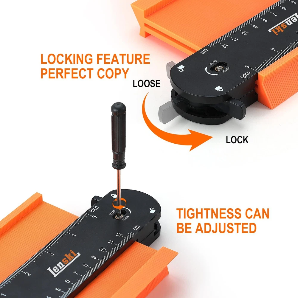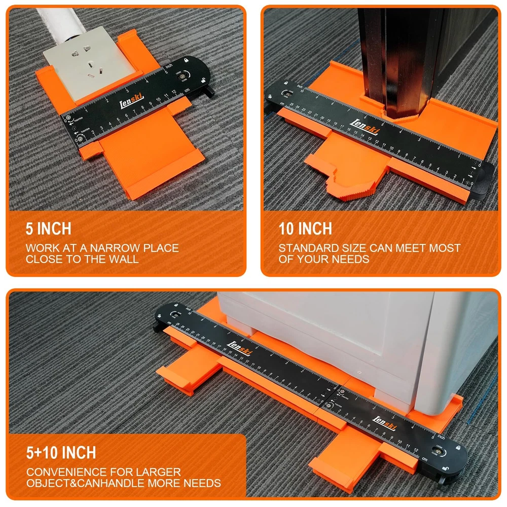 Contour Gauge 【Christmas Gifts for Men】- Made from high-strength materials, the Contour Gauge won't scratch or damage the original surface of the shape you're copying. Three size contour gauge profile tool is a safe and reliable tool for any DIY project 【Mens Stocking Stuffers】- The Contour Gauge can quickly and accurately duplicate any irregular shape. 5-inch suitable for corner copy, 10-inch fits to measure longer projects,15-inch after connecting can copy larger object contours 【White Elephant Gifts for Adults】 - The gauge has both inch and centimeter scales on both sides of the tool, allowing for accurate measurements no matter what system you prefer. Simply press the gauge onto the shape, trace the contour, and cut to size 【Unique Gifts for Men】 - Unlike other contour gauges with plastic locks, the Contour Gauge features a sturdy metal locking mechanism that is built to last. It can withstand long-term use and maintain its original shape 【Gifts for Men Who Want Nothing】 - The Contour Gauge makes a great gift for any man in your life. It's perfect for birthdays, Christmas, Father's Day, and anniversaries. Give the gift of precision and accuracy with the Contour Gauge