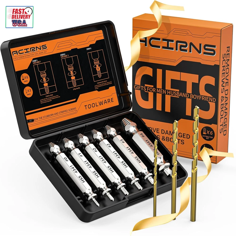 Store New Arrivals Add to Favorite View Feedback Contact Gifts for Men,9 Pcs Damaged Screw Extractor Set,Valentines Day Gifts for Him,Stocking Stuffers for Adults Men Him, Cool Stuff Gadgets for Men Dad Boyfriend Father Husband, Mens Gifts Description Item model number 9-screw extractor Part Number 9-screw extractor Batteries Required? No Power Source hand_powered Product Dimensions 5.63 x 43.31 x 14.45 inches Material Carbide, High Speed Steel, HSS 4341 Country of Origin China Item Weight 3.52 ounces Included Components 6 screw extactor set, 3 Twist Drill Bit DAMAGED SCREW EXTRACTOR SET: This ACIRNS 9-piece set contains a complete set of tools to effectively handle stripped or damaged screws. It has 6 pieces of HSS 4341 screw extractor set (#0, #1, #2, #3, #4) and 3 pieces of HSS 4341 twist drill bit set (HSS2.0, HSS3.0, HSS3.5) EASY TO USE: Just two simple steps to get the job done - use the correct size screw extractor to drill a hole with the cutting size (or use the extra three drill bits to drill a hole), and then use the removal tool to easily remove the screw or bolt Hardness 63-65HRC: Titanium alloy hardened steel material, more durable than most screw extractors on the market, hardness and durability are superior to other materials, please buy with confidence, complete peace of mind SUPERB GIFTS FOR MEN, HOLIDAY GIFT GUIDE: This Damaged Screw Extractor makes an amazing gift for any occasion. A must-have stocking stuffers for men and women for Thanksgiving, Christmas, Mother's Day, wives, daughters, sons, kids, birthdays, tool gifts for dads, personalized Father's Day gifts for men, husbands, boyfriends, he, she, fathers, adults, stepfathers, teens, brothers, teenage boys, teenage girls, families, stepfathers. Practical funny gifts for men, cool stuff for men, cool tools for the man who has everything. THE DIY TOOLS for MEN: Men won't know they need screw extractor set until they have one! This screw extractor set is GIFT WRAP AVAILABLE, can be gifted to your loved ones as it reflects a fresh trend with fun and practical. Amazing and Unique tool gifts for men women. The must have stocking stuffers for men, gifts for dad, husband, father, him, guy teens, adult, Boyfriend, son on Birthdays, Christmas, Fathers Day or anniversary. Perfect Holiday Gift Guide BUY WITH CONFIDENCE: ACIRNS Multi-funtional screw extractor tool is well constructed and durable, the handy tools to save your time and effort from having to run back and forth to remove rusty or damaged screw. Super cool tool gifts for men! We are confident that find it the most versatile tools in your toolbox. Any problems about ACIRNS super screw extractor set, please contact us, we provide free return, free replacement Product Description Damaged Screw Extractor Kit and Stripped Screw Extractor Set Easily and Quickly Remove All Common Sizes of Damaged, Broken or Stripped Screws Our screw extractor tool is perfect gifts for dad/ men/ him/husband/ father/ boyfriend/ women/mom/friend/grandpa/grandma/ woodworking/ repaireror a handyman in their lives for Christmas Day, Fathers Day, Great Mothers Day, Thanksgiving Day, Birthday,White Elephant,New Year, and Anniversary. A men who works hard for home improvement deserves practical mens gifts. The Perfect Stocking Stuffer for the Holidays! Men won't know they need screw extractor set until they have one Multi-Function screw extractor set Tool Sets! Men will realize this one is a must part of every toolbox until they have one! Perfect for home improvement, carpentry tools, construction, auto repair, and other DIY projects. ABOUT US We offer the best prices around on high quality products. Our E-store includes media such as books, movies, music and games while offering electronics, toys, sporting apparel, clothing, tools, general home, garden items and more. SHIPPING We are always working hard to ensure your package arrives as soon as possible. Please understand that some factors like weather, high postal traffic, and the performance of shipping companies are outside of our control. We offer free shipping to the lower 48 states and ship within 2 business days of payment, usually sooner. We do not accept P.O. Boxes. Please provide a physical address. For shipping outside of the continental USA, we only use eBay's Global Shipping Program.The item is shipped to KY and then sent to the rest of the world. International customers are responsible for all duties and taxes. Continue to check out in order to calculate costs for shipping the item to your country. Messages regarding eBay's Global Shipping Program MUST be directed at eBay EXCLUSIVELY. RETURNS We offer a 30-Day Return Policy on items which you are not completely satisfied with. You have the option for a full-refund or an exchange of the item. No returns are available on items shipped outside of the USA. PAYMENT We accept PayPal. CONTACT US This page content is yet to come Please ad us to your favorite seller and visit again later Thank You CUSTOMER SATISFACTION We try our very best to make sure every customer is completely satisfied. If there's a problem, message us! We're happy to help. WE ACCEPT Copyright © 2021 AutoDS. | All Rights Reserved