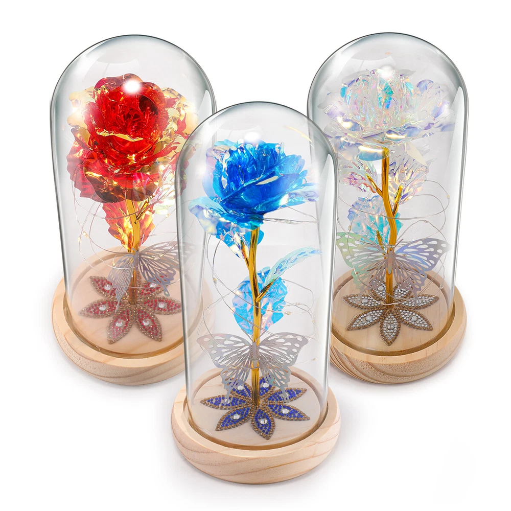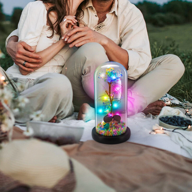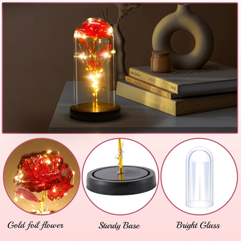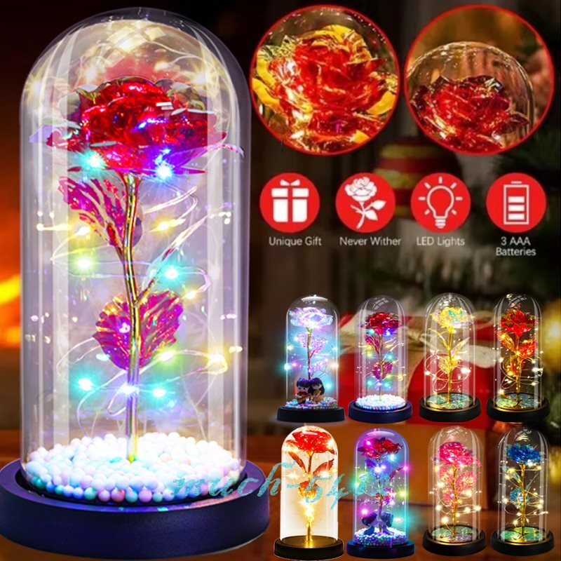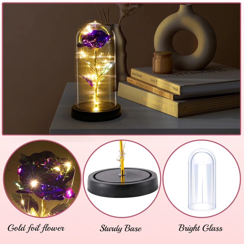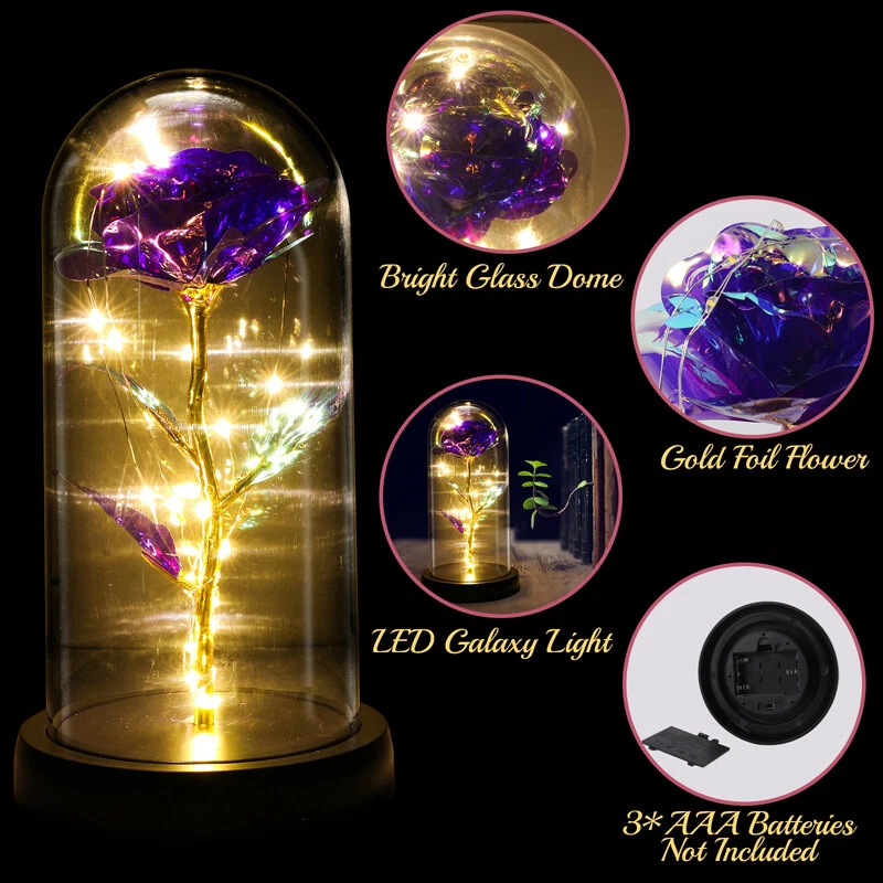 Gifts for Wife Women Wife Gifts for Her Christmas Girlfriend Gifts Birthday Gift 🌹Red Rose Whisper🌹 -- Love, Passion, Beautiful love. 🌹Golden Rose Whisper🌹-- Noble, Beautiful, Apologetic. 🌹Red and Golden Rose Whisper🌹-- Happiness. 🌹Blue Rose Whisper🌹-- Miracles, Pure, impossible. 🌹Purple Rose Whisper🌹-- Deep Love, Mysterious and Noble. 🎁 Valentines Day Gifts For Her, Mom Gifts, gifts for grandma,valentines rose in Glass Dome perfectly and eternally, crystal clear Glass Dome. Colorful artificial flower rose gifts will never wither and die. The blue Rose Flower Gifts is perfect and impeccable,represent love,colorful roses stand for love and warm. Rose flower is as full of infinite hope and beauty. And it will bring her infinite love and beauty. Rose gifts for her. 🎁 Perfect Valentines day gifts for woman who has everything,cute women gifts. Women Gifts For Moms which are Awesome and Totally Thoughtful. Glass dome rose also would look amazing her gifts in your living room or bedroom. Unique rose flower gift for women,girlfriend,wife,mom,grandma,mother-in-law and stepmom,etc. Birthday presents for women. Mom valentines day gifts. 🎁 Light Up Rose Mom Gifts For Womens. Valentines day gifts for mom from daughter. Valentines day gifts for sister,Valentines day gifts for her. Crystal artificial Rose in a glass dome is wrapped around an LED Strip light,Powered by 3 x AAA batteries(include). Led strip light bright warm white lighting. The beautiful rose flower gift can use in daytime and nighttime for home room or create romantic atmosphere,Valentines glass rose is symbol of appreciation,best wishes,love and romantics. #12618-12619-12620-12621 Pink/Purple/Blue/Red LED Rose Flower+Glass Dome: -- Rose Flower: Made of high-quality plastic, which makes the rose and petals look very real, and also covered with a transparent dome, which can protect the rose flower and enjoy the beauty of the rose in 360°. -- Romantic Symbol: This is a beautiful LED light rose, which means enthusiasm and romance, not only eternal love, but also a symbol of good wishes. -- LED Roses: Roses wrapped around the LED light strip, powered by batteries, can be used for home decoration or create a romantic atmosphere during the day and night. -- Wide Application: Not only can be used as a living room or bedroom decoration, but also can be used as a gift for relatives or friends, very suitable for home decoration, holiday gifts, etc. Specification: Light color: warm white Material: plastic Lighting mode: always on Uses: suitable for home decoration, holiday gifts, etc. Battery Type: 1.5V*AAA battery (NOT Included) Product size: 20.5 (height) *11 (bottom diameter) *9cm/8.07*4.3*3.5inch Package includes: 1xRose Flower Lamp 1x Packing Box #12449 Colorful LED Rose Flower+Kiss Doll: -- Rose Flower: This colorful foil gold rose flower is made of high-quality plastic with a stable and smooth surface, the roses and petals displayed look very real, and it is also covered with a transparent dome that protects the rose flower and makes it timeless. -- LED Rose: The rose is wrapped around the colorful LED light strip, powered by 3 AAA batteries (included). When turned on at night, it will light up with colorful constant lights, creating a romantic atmosphere for your home and bedroom at night. -- Romantic Symbol: The built-in kissing toy for little boys and girls is very cute. The rose will bring you infinite love and beauty. It not only symbolizes eternal love, but also a symbol of good wishes. -- Wide Application: Not only can be used as a decoration in the living room or bedroom, but also as a gift for relatives or lovers, very suitable for home decoration, holiday gifts, etc. Specification: Flower color: colorful Light color: multicolor Material: plastic Lighting mode: always on Battery type: 1.5V*AAA battery (NOT Included) Usage: Suitable for home decoration, holiday gifts, etc. Product size: 21.5 (height)*11 (bottom diameter)*9 (thickness) cm/8.46*4.3*3.5inch Package includes: 1x Rose Flower Night Light 1x Packing Box #12450 Red LED Rose Flower+Kiss Doll: -- Rose Flower: This colorful foil gold rose flower is made of high-quality plastic with a stable and smooth surface, the roses and petals displayed look very real, and it is also covered with a transparent dome that protects the rose flower and makes it timeless. -- LED Rose: The rose is wrapped around the colorful LED light strip, powered by 3 AAA batteries (Included ). When turned on at night, it will light up with colorful constant lights, creating a romantic atmosphere for your home and bedroom at night. -- Romantic Symbol: The built-in kissing toy for little boys and girls is very cute. The rose will bring you infinite love and beauty. It not only symbolizes eternal love, but also a symbol of good wishes. -- Wide Application: Not only can be used as a decoration in the living room or bedroom, but also as a gift for relatives or lovers, very suitable for home decoration, holiday gifts, etc. Specification: Flower color: red Light color: multicolor Material: plastic Lighting mode: always on Battery type: 1.5V*AAA battery (NOT Included ) Usage: Suitable for home decoration, holiday gifts, etc. Product size: 21.5 (height)*11 (bottom diameter)*9 (thickness) cm/8.46*4.3*3.5inch Package includes: 1*Rose Flower Night Light 1*Packing Box #12451 Colorful LED Rose Flower+Glass Dome: -- Rose Flower: This colorful foil gold rose flower is made of high-quality plastic with a stable and smooth surface, the roses and petals displayed look very real, and it is also covered with a transparent dome that protects the rose flower and makes it timeless. -- LED Rose: The rose is wrapped around the colorful LED light strip, powered by 3 AAA batteries (Included ). When turned on at night, it will light up with colorful constant lights, creating a romantic atmosphere for your home and bedroom at night. -- Romantic Symbol: The rose will bring you infinite love and beau