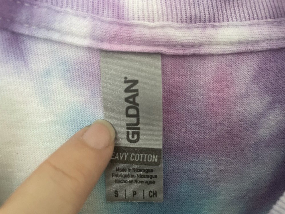 Gildan Adults Cool Tie Dye 100% Cotton Crewneck Short Sleeve Shirt Purple Blue S. Condition is pre-owned. Smoke free, pet free home. Shipped via USPS Ground Advantage. In very good condition. Free of rips or stains.