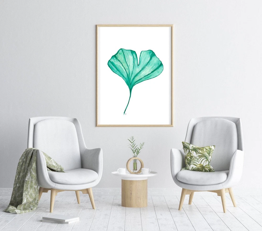 Ginko Art Print Watercolor Print Wall Art Floral Print Botanical Watercolor Picture Poster Print Art Print Decoration Ginko Leaf Material: Premium luster photo paper Print type: Inkjet printing One side printed + The finish provides the highest possible resolution and color saturation + Lasts up to 200 years in color and 400 years in black-and-white + Printed on high-quality resin-coated photo base paper medium + Posters can be hung with double-sided tape, tacks, or framed + Hand washing with a gentle cry cloth is recommended for extended durability I will hand select the best choice of paper for your chosen design to ensure top quality results for a beautiful, bright and luxurious print. All prints are sealed in cellophane slips for protection during transportation, and are shipped in a protective cardboard envelope.