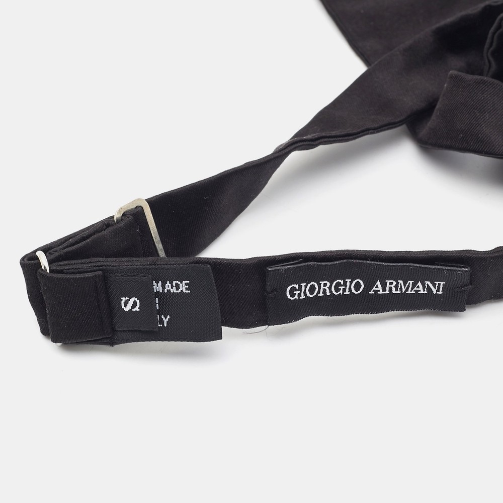 Our eBay Store About Us Contact Us Add to Favorite Sellers Giorgio Armani Black Open Bow Tie S Experience timeless elegance with this impeccably crafted satin bow tie, an exquisite creation from Italy's renowned design house. Giorgio Armani brings you a versatile accessory, ideal for the discerning gentleman with a taste for sophistication. The luxurious silky finish adds a touch of refinement to any formal ensemble, ensuring you stand out with understated charm. This piece embodies classic Italian craftsmanship, making it an essential addition to the wardrobe of any fashion-forward individual. Product Details Brand Giorgio Armani Color Includes Original Box Material Satin Size Small Certified by The Luxury Closet This item has gone through a detailed authentication process overseen by our experts. We offer a lifetime guarantee of authenticity on all our items. How We Check The in-house team of experts at The Luxury Closet is highly trained to verify the authenticity and the condition of the luxury products. They ensure that only 100% authentic items are put on sale.The evaluation process is unique with its own mix of assessment criteria and differs according to the category. Each item is evaluated based on the following combination of hallmarks, hardware, stitching, symmetry, material, craftsmanship, stamping, codes, hologram stickers, and packaging. Our authenticators also check if the items have been modified or amended (e.g., aftermarket diamonds, replaced batteries, repaired bags, etc.) International Buyers Import duties, taxes and charges are not included in the item price. These charges are the buyers responsibility. Please check with your country’s customs office to determine what these additional cost will be prior to buying.