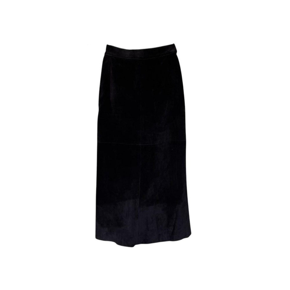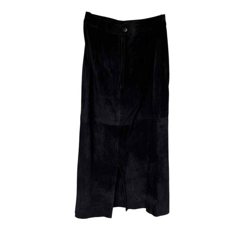 GINO Di GIORGIO MADE IN ARGENTINA Black GENUINE LEATHER midi skirt with elastic waist and side zipper #goth #grunge #western #leather size 7/8