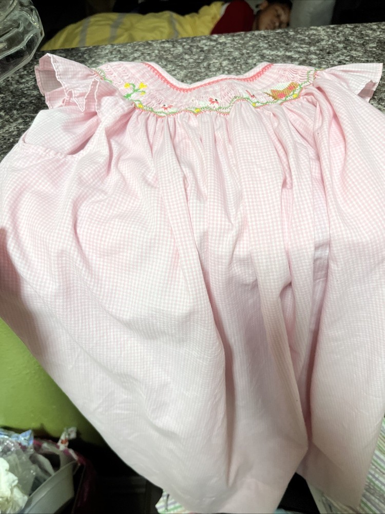 Girls Dress Size 4 White Sleeveless Pink Floral Sheer Overlay Ribbon Easter Vtg