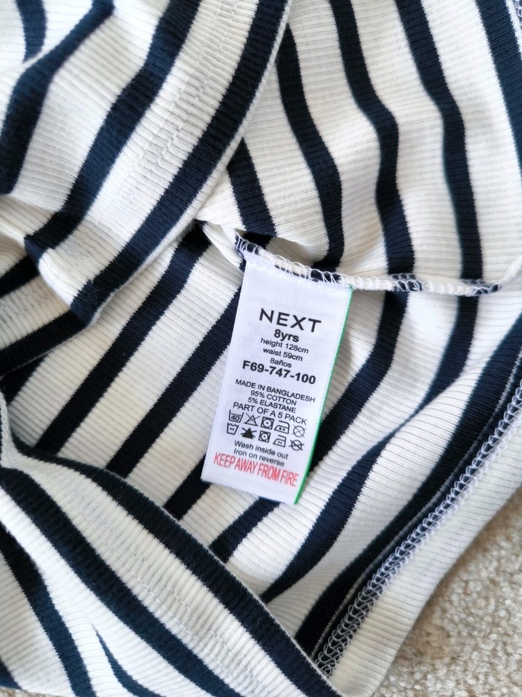 This Girl's Ribbed Long Sleeved Top in size 8 years is never been worn. It is from the brand NEXT. Made from a blend of cotton and elastane, the top is in a classic white colour. With long sleeves, it is a stylish and comfortable option for young girls.