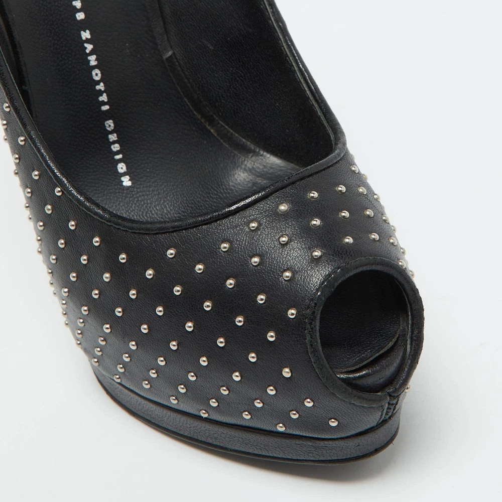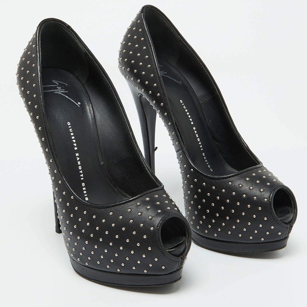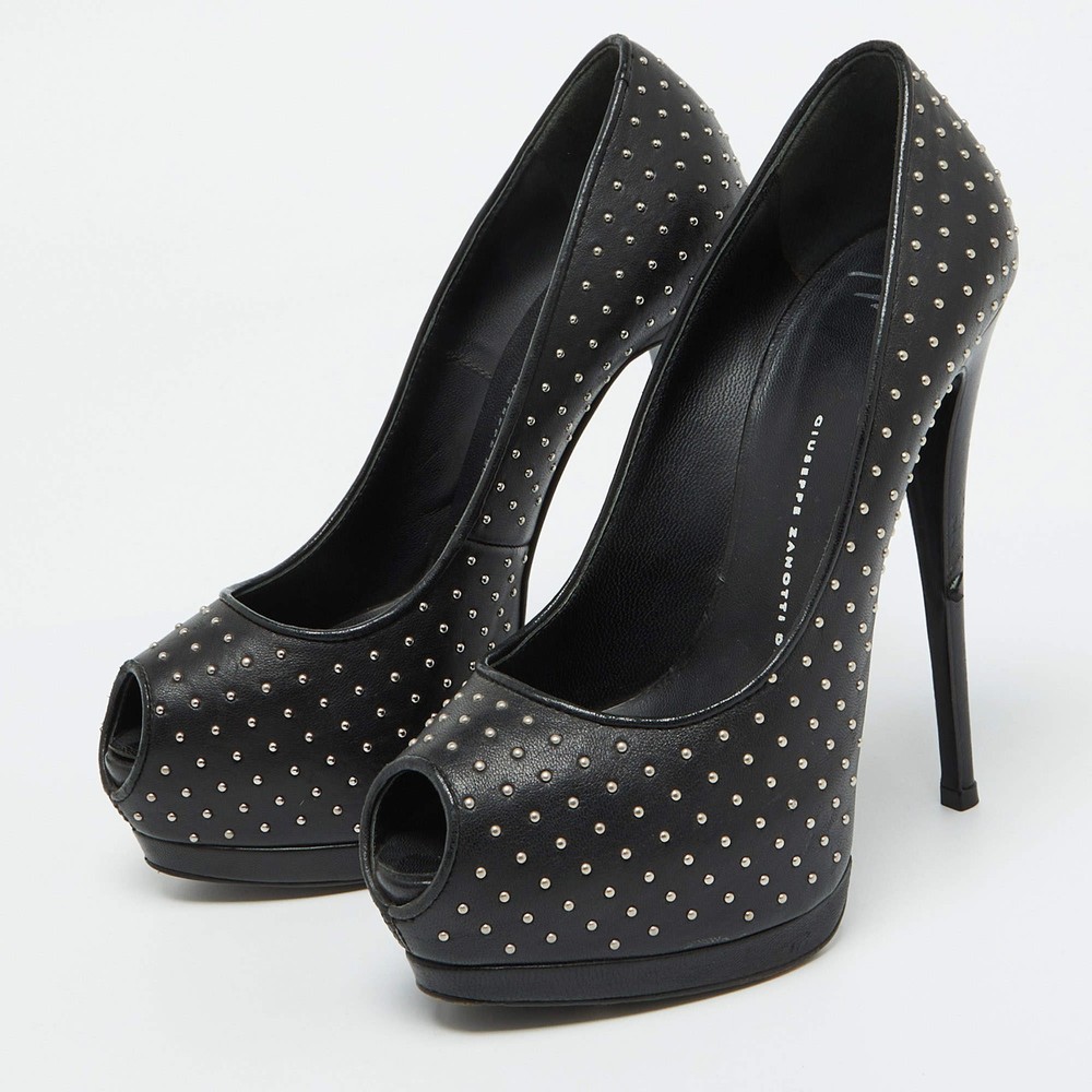 Our eBay Store About Us Contact Us Add to Favorite Sellers Giuseppe Zanotti Black Leather Studded Peep Toe Platform Pumps Size 37 Discover footwear elegance with these Giuseppe Zanotti women's pumps. Meticulously designed, these heels marry fashion and comfort, ensuring you shine in every setting. Product Details Brand Giuseppe Zanotti Color Black Includes The Luxury Closet Packaging Outsole Length 22 cm Outsole Width 6.5 cm Size 37 Certified by The Luxury Closet This item has gone through a detailed authentication process overseen by our experts. We offer a lifetime guarantee of authenticity on all our items. How We Check The in-house team of experts at The Luxury Closet is highly trained to verify the authenticity and the condition of the luxury products. They ensure that only 100% authentic items are put on sale.The evaluation process is unique with its own mix of assessment criteria and differs according to the category. Each item is evaluated based on the following combination of hallmarks, hardware, stitching, symmetry, material, craftsmanship, stamping, codes, hologram stickers, and packaging. Our authenticators also check if the items have been modified or amended (e.g., aftermarket diamonds, replaced batteries, repaired bags, etc.) International Buyers Import duties, taxes and charges are not included in the item price. These charges are the buyers responsibility. Please check with your country’s customs office to determine what these additional cost will be prior to buying.