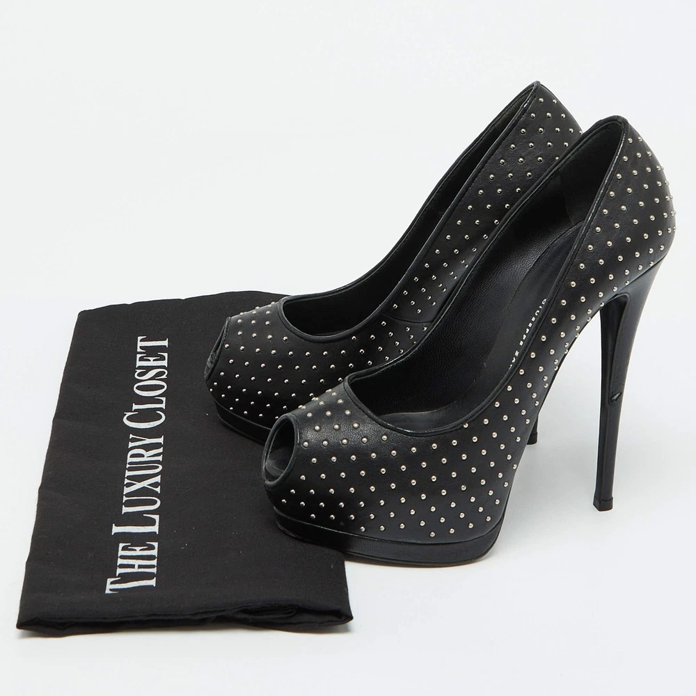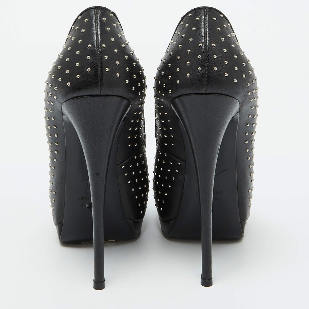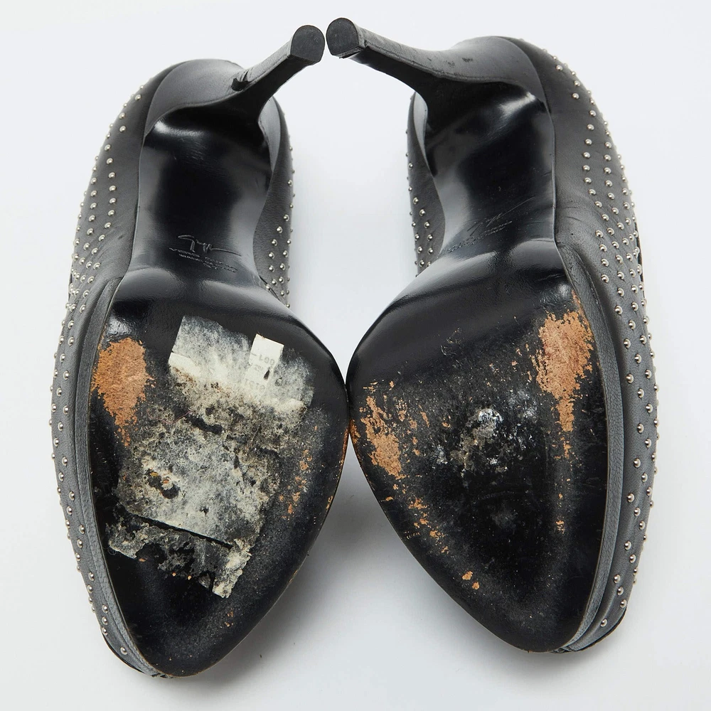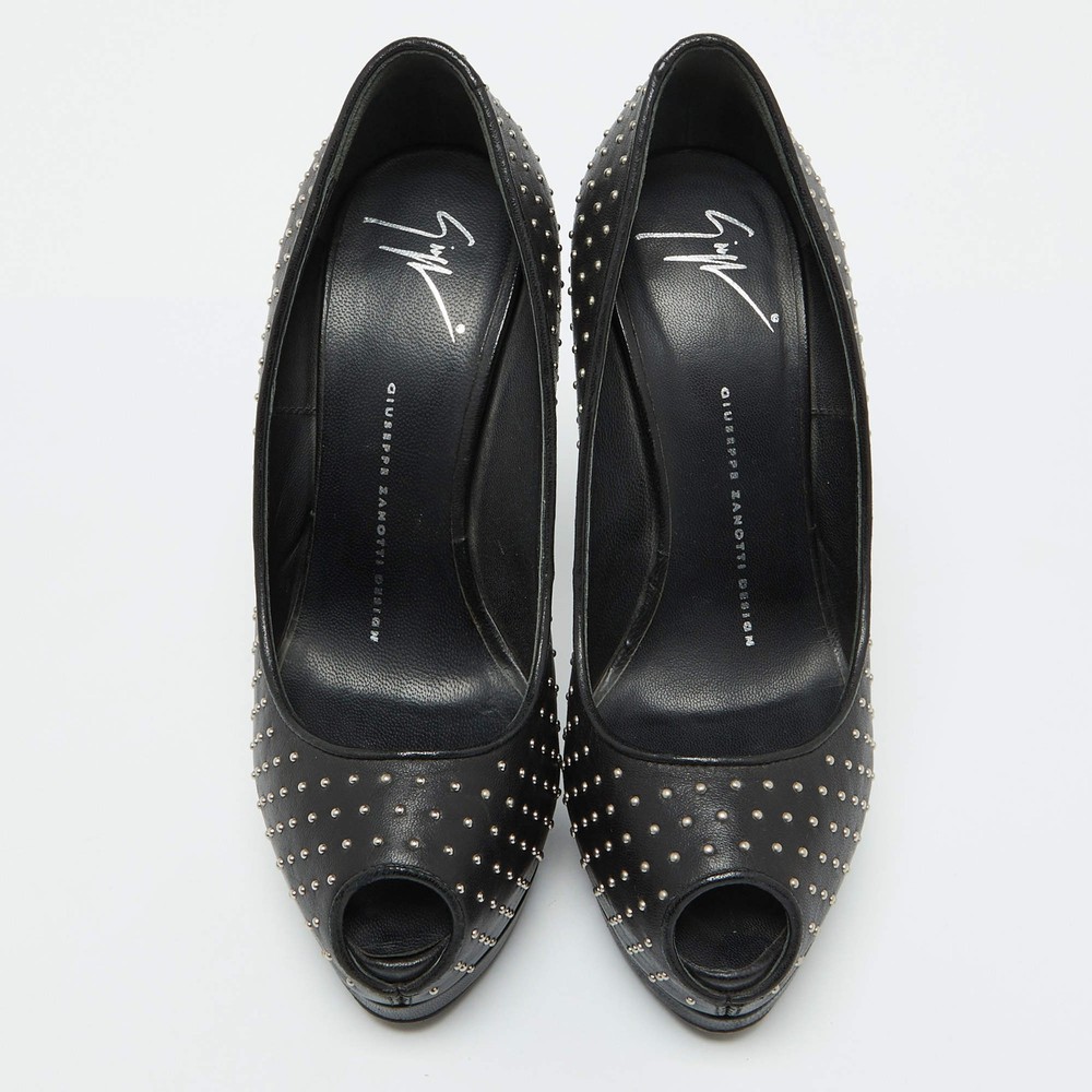 Our eBay Store About Us Contact Us Add to Favorite Sellers Giuseppe Zanotti Black Leather Studded Peep Toe Platform Pumps Size 37 Discover footwear elegance with these Giuseppe Zanotti women's pumps. Meticulously designed, these heels marry fashion and comfort, ensuring you shine in every setting. Product Details Brand Giuseppe Zanotti Color Black Includes The Luxury Closet Packaging Outsole Length 22 cm Outsole Width 6.5 cm Size 37 Certified by The Luxury Closet This item has gone through a detailed authentication process overseen by our experts. We offer a lifetime guarantee of authenticity on all our items. How We Check The in-house team of experts at The Luxury Closet is highly trained to verify the authenticity and the condition of the luxury products. They ensure that only 100% authentic items are put on sale.The evaluation process is unique with its own mix of assessment criteria and differs according to the category. Each item is evaluated based on the following combination of hallmarks, hardware, stitching, symmetry, material, craftsmanship, stamping, codes, hologram stickers, and packaging. Our authenticators also check if the items have been modified or amended (e.g., aftermarket diamonds, replaced batteries, repaired bags, etc.) International Buyers Import duties, taxes and charges are not included in the item price. These charges are the buyers responsibility. Please check with your country’s customs office to determine what these additional cost will be prior to buying.