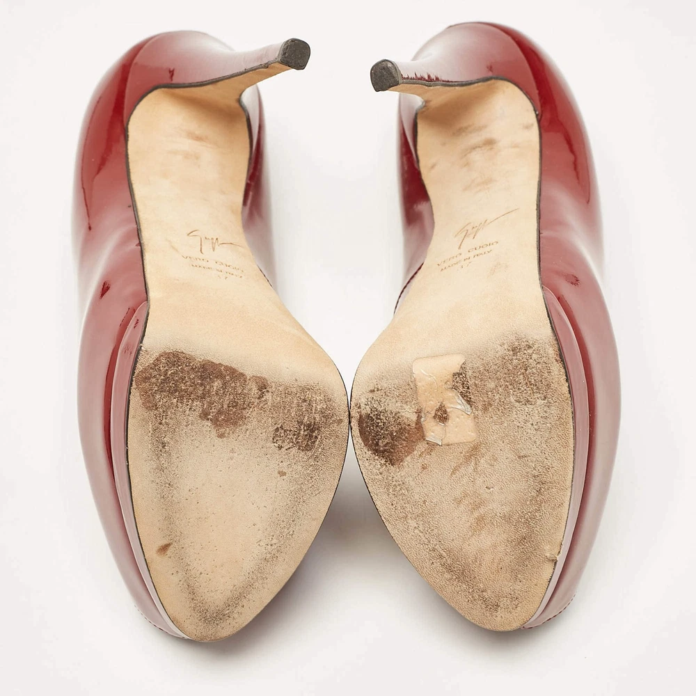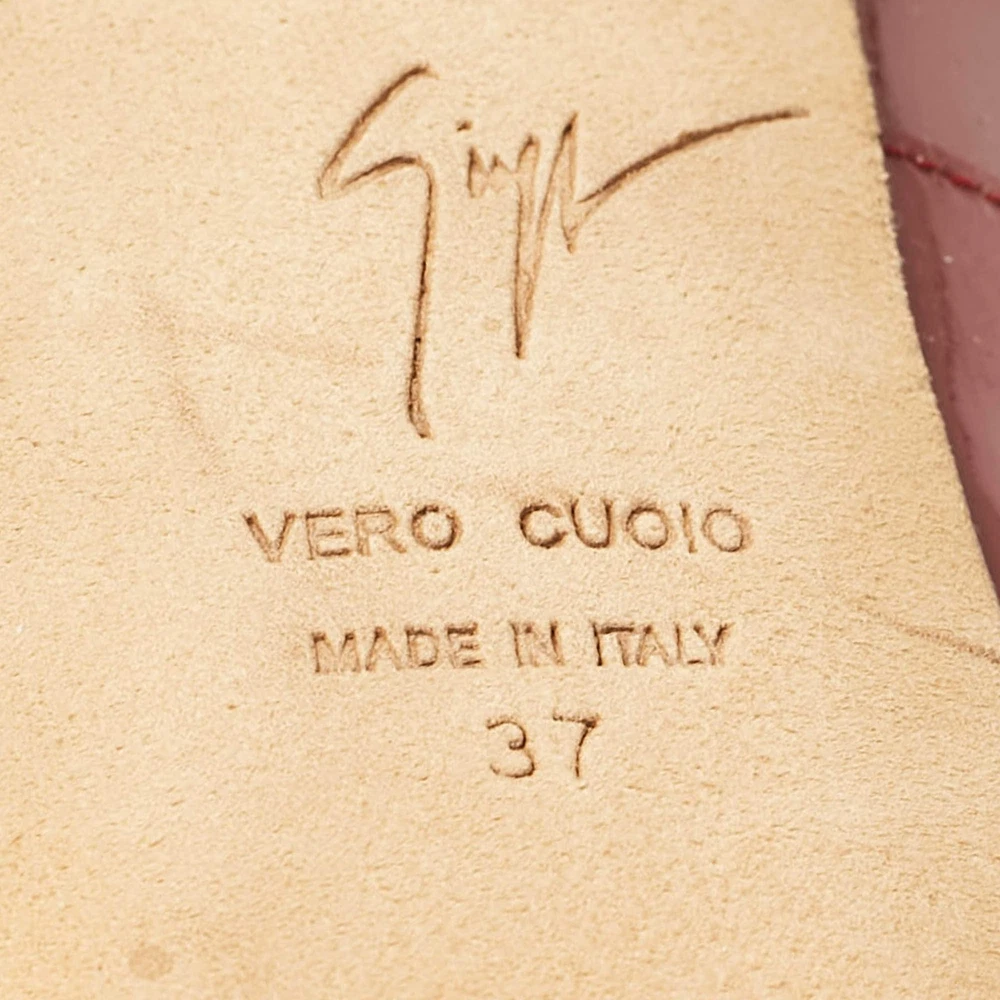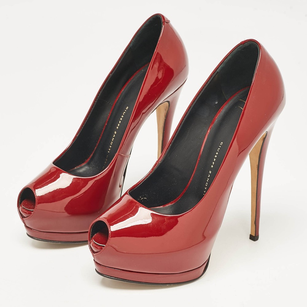 Our eBay Store About Us Contact Us Add to Favorite Sellers Giuseppe Zanotti Burgundy Patent Leather Sharon Peep Toe Pumps Size 37 Wonderfully crafted shoes added with notable elements to fit well and pair perfectly with all your plans. Make these designer pumps yours today! Product Details Brand Giuseppe Zanotti Color Burgundy Includes Original Dustbag Outsole Length 23 cm Outsole Width 8 cm Size 37 Certified by The Luxury Closet This item has gone through a detailed authentication process overseen by our experts. We offer a lifetime guarantee of authenticity on all our items. How We Check The in-house team of experts at The Luxury Closet is highly trained to verify the authenticity and the condition of the luxury products. They ensure that only 100% authentic items are put on sale.The evaluation process is unique with its own mix of assessment criteria and differs according to the category. Each item is evaluated based on the following combination of hallmarks, hardware, stitching, symmetry, material, craftsmanship, stamping, codes, hologram stickers, and packaging. Our authenticators also check if the items have been modified or amended (e.g., aftermarket diamonds, replaced batteries, repaired bags, etc.) International Buyers Import duties, taxes and charges are not included in the item price. These charges are the buyers responsibility. Please check with your country’s customs office to determine what these additional cost will be prior to buying.