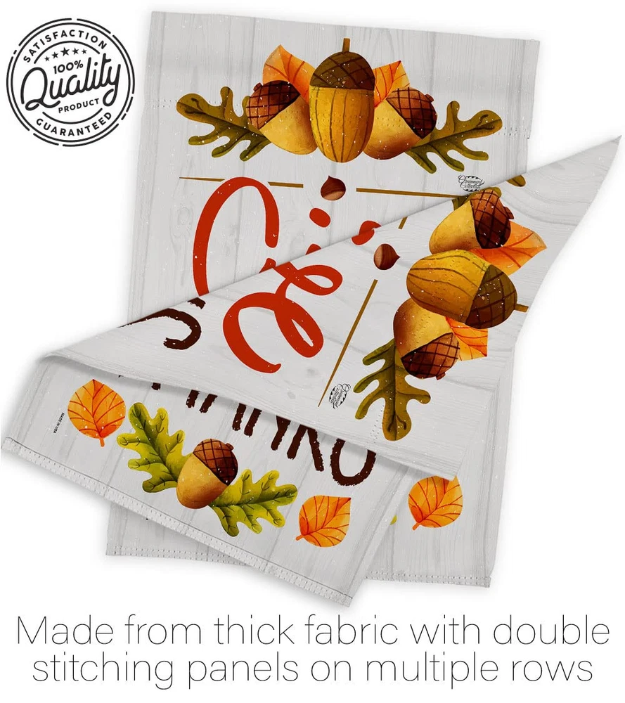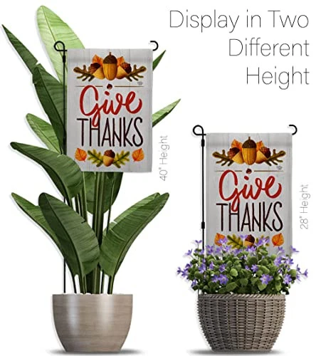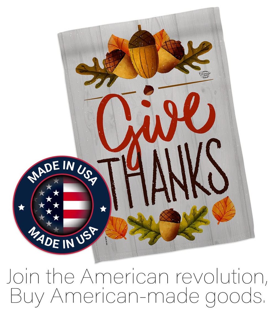 Thanksgiving Beautiful Mini Garden Flag with Metal Garden Banner Pole Stand - Complete Set with Garden Pole - 16" x 40" Power Coated Metal Flag Stand have variety of Garden Flag Set for all occasions. Uniquely design for hanging indoor or outdoor use. We are committed to offering you exceptional values. Our customers enjoy displaying our Garden Flag Set for longer periods. Specification: Theme: Thanksgiving Size: Garden Flag Set 13" x 18.5" Size: Metal Garden Pole Print: Double-Sided Readable: Readable Both Sides Material: Weather Resistant 3 Layers Blockout Stitching: Double Stitched Display: Vertical Hang Type: Sleeve Artist: © Megan Tanaka Special Features: Origin: Made In USA Package Include: 1 pc x Mini Garden Flag 13" x 18.5" 1 pc x Metal Yard Banner Hardware For more than a decade, we’ve been dedicated to manufacturing flags with no comparison in quality and beautiful designs. Our flags are made with our Guard material that is soft to the touch and designs can be read correctly on the flag. A feature that our customers will love. We are committed to using eco-friendly inks that won’t leave a foot print in our environment. MPN: OC-TG-GS-192137-IP-BO-D-US18-OC 92137 92137