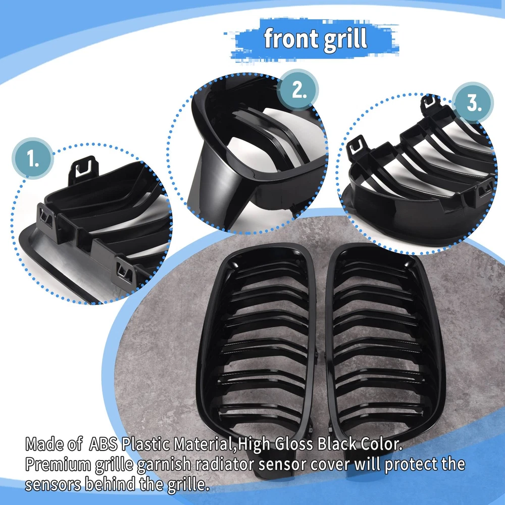 GläNzend Schwarz Auto Front Nieren Gitter Gitter FüR- 3 Series F30 F31 F35 5425 {LIS_PIC} Die Kühlergrilleinsätze Garnitur Sensorabdeckung passt für 3er 4-Türer Limousine F30; 5-türiger F31; F35. Hergestellt aus hochwertigem ABS-Kunststoff, hochglänzend schwarze Farbe. Die Kühlersensorabdeckung mit Premium-Grillgarnitur schützt die Sensoren dem Kühlergrill. Direkter Austausch Großer Kühlergrill, einfach zu installieren. Vorsicht bei Auto mfg Mitte des Jahres. Änderungen. Bitte senden Sie uns ein Bild der Vorderseite Ihres Autos, bestätigen Sie oder teilen Sie uns die Rahmennummer Ihres Autos mit. Wir werden unser Bestes für Sie tun. Schöner, langlebiger, trendiger Look Ersetzt leicht die alte Niere Brandneu und unbenutzt. Hilft, Stil hinzuzufügen und ältere Modelle zu verbessern. Verleiht Ihrem Fahrzeug einen individuellen Stil. Einfach zu installieren, langlebig Aktualisieren Sie Ihren alten, veralteten, schmalen und verblassten Kühlergrill und nehmen Sie diesen fabelhaften M5 Euro Grill , der Ihnen einen breiteren Lamellentyp und ein elegantes Aussehen bietet Zustand: 100% Brandneu Für 3er F30 F31 F35 2012-2017 Farbe:Hellschwarz Material:Kunststoff Verpackungsinhalt: 1 Paar x Autogrill (Doppellamelle)