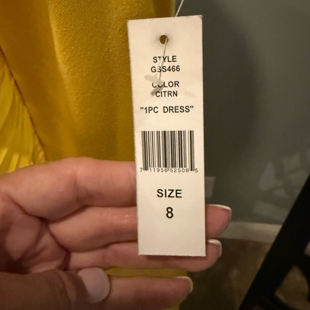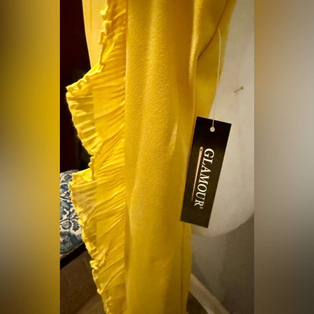 Chic yellow dress with asymmetrical ruffle. Perfect for stylish outings. New With Tags. Women's size 8