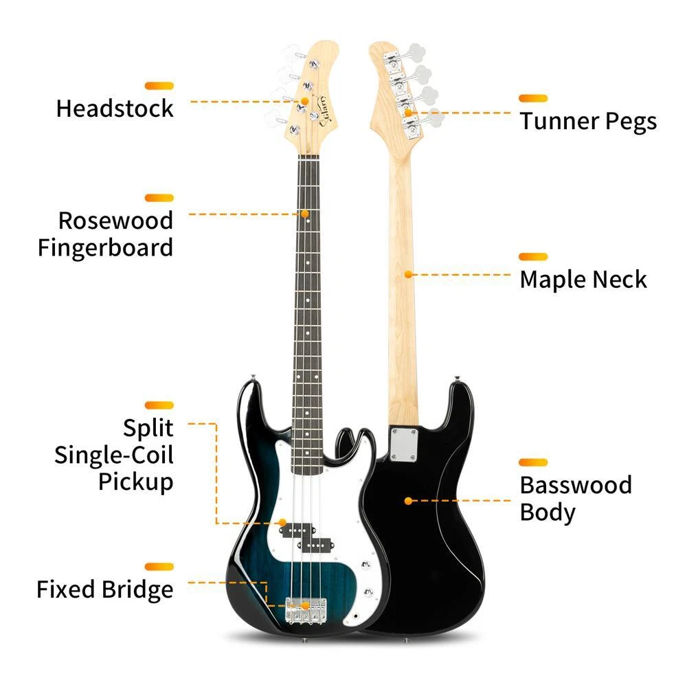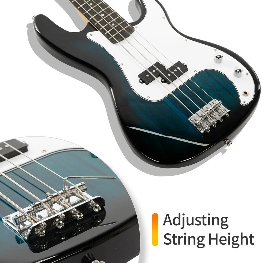 Glarry 46in Beginner Electric Bass Guitar Starter Kit w/Case 20W Amp Blue