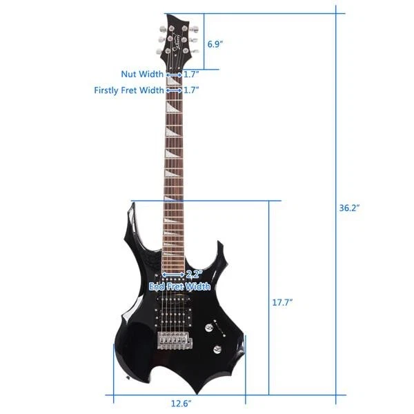 Introductions: Looking for a high-performance electric guitar? Then take a closer look at our Glarry Flame Electric Guitar HSH Pickup Shaped Electric Guitar Pack Strap Picks Shake Cable Wrench Tool! Featuring great sound and ease of playability, it is an ideal choice for beginners as well as Professional level. It uses the humbucker-single-humbucker pickup, can adapt to a variety of music style, has its 5 pickup adjustment. High-tensile strength fretwire ensures durability and smooth playability. What are you hesitating for? Bring it home right now! Features: 1. It can be used by both beginners and professionals 2. Cool body shape 3. Humbucker-single-humbucker pickup, suitable for various music styles 4. 5 pick up adjustment, 5 way switch; 1 x volume; 1 x tone 5. Tremolo bridge system 6. The neck double adjustment: Two - way adjustable neck 7. Audio interface: 1/4" Jack, suitable for universal audio 8. Complimentary: guitar bag, cable, shoulder strap, rocker and pick Specifications: 1. Style: Electric Guitar 2. Brand: Glarry 3. Body: • Orientation: Right Handed • Body: Basswood • Color:Black 4. Neck and Fingerboard • Neck: Maple • Fingerboard: Rosewood • Strings: 6 • Frets: 24 • Nut width: 1.656 in. (42 mm) • Scale Length: 25.5" 5. Pickups & Hardware: • Pickups: Humbucker-Single-Humbucker • Control: 5 Way Switch; 1 x Volume; 1 x Tone • Hardware: Tremolo • Jack: 1/4" 6. Dimensions • Guitar: (36.2 x 12.8 x 1.65)" / (92 x 32.5 x 4.2)cm(L x H x W) • Gutiar Weight: 6.28lb / 2.85kg Package Includes: 1 x Electric Guitar 1 x Electric Guitar Bag 1 x Guitar Strap 1 x Tremolo Arm 1 x Amp Wire 1 x Wrench Tool 1 x Plectrum