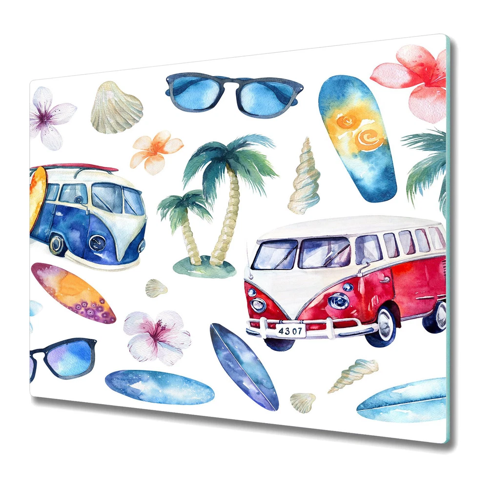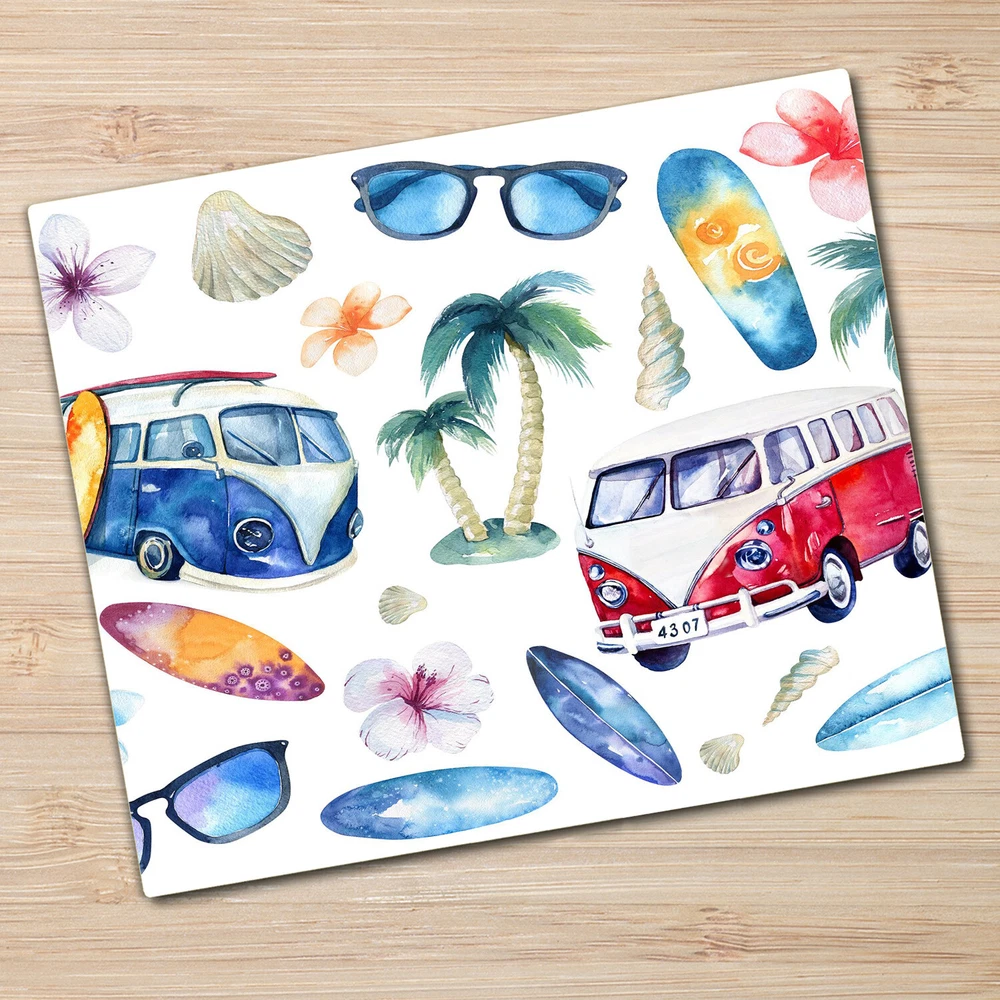 WALL MURALS IKEA ® DECALS REFRIGERATOR MAGNETS DOOR STICKERS Tempered glass chopping board 4 mm thick safety glass (real float glass), heat resistant, scratch resistant, impact resistant, smudge-proof and waterproof, high quality image print with vivid colours, colourfast by UV protection, board with non-slip rubber feet, protects your work surface from chopping and heat, choose from thousands of modern designs dimensions: 60 cm x 52 cm - (23,6" x 20,5") Glass Chopping Cutting Board Surfers Beach Holiday Ocean Hawaii 60x52 Glass chopping board - made of high quality 4 mm thick tempered glass. Product offers the excellent level of strength and durability. It is heat resistant, scratch resistant, and impact resistant. Non-slip rubber feet ensure good adhesion to the ground during use. The chopping board is great for protecting and saving your kitchen workspace. Unique and modern design of our choppping boards will be a stylish addition to your home. Our offer includes custom-size. We can create a custom listing for you on eBay. The handling time / manufacturing time for a made-to-measure chopping boards is 15 workdays. - The item is made freshly and specially for you. - Please note the 3-workday handling time. The delivery time is additional 3 workdays. - Please note that various manufacturers use different settings for their computer screens. Therefore, the colors of the delivered pictures may differ from the colours displayed on your screen. - Please note that the product you are buying is made of polyester material print under glass and the offered motifs and material textures such as "fabric", "woodgrain", "brushed stainless steel" or "bricks" are just printed. - Glass boards and kitchen splashbacks should not be washed in the dishwasher or left to soak in water. - Some induction hobs may sound an alarm when the glass board is placed on top - please ensure our product is compatible with your appliance. - Our kitchen chopping boards and splashbacks are only heat resistant on the glass side, i.e. the upper part is heat resistant (e.g. you can place a hot pot on it). The laminate/foil is not heat resistant, the product can not be placed on a hot pot or on a running cooker. - The minimum distance of the chopping board/panel from an running cooker (burner) is 20cm. High Safety Individual Style Highest Quality Vintage Vintage is a style that blends the past with the present - it is about going back to the roots by bringing back the characteristic elements of the interior design of the past. Opposing current trends, it emphasizes the unique and individual character of the space. Inspired by the history of design, VINTAGE WALLPAPERS make numerous references to classic patterns that draw on past trends. Floral When we think about beauty, one of the typical things that come to mind are flowers - the fantastic works of nature that keep delighting us with their extraordinary forms, countless colors and marvellous smells. They are a true pleasure to our eyes, our nose... They are the most beautiful decoration you can think of and always make a good gift. Kids Add some magic to your nursery! Make childhood more fun and colorful with Kid's collection wallpapers. It is a combination of shapes, motifs, patterns, flowers, animals, toys and a lot more! Express the individuality of children and have fun! Patterns Dots, spots, polka dotted, chequered, squares, triangles, stripes straight or not, something that makes sense and something completely abstract... Our range of PEEL AND STICK PATTERNS WALLPAPERS offers a wide variety of geometrical shapes and an abundance of ideas on how to turn a seemingly simple and unattractive object into an unusual wall decoration. Exceptional color intensity is achieved through the use of dyes with the latest nanotechnology! We do not use solvent inks! That is why our products are extremely durable and have no harmless impact on health. Born and raised in the Hamburg area, Germany. I love to travel and my head is always filled with great ideas. I've always adored everything on my walls and would daydream that someday I could open a wall murals shop. Now I work with Coloray team so I am doing some- thing that I love! Feel free to drop us a message at anytime. We are standing by to answer all your questions! Main colour: Multi-Coloured Theme category: Holidays Key words: glass, tempered, worktop saver, kitchen, chopping board, cutting board, utensil board, induction, ceramic hob cover, worktop saver, worktop protector, serving board glass, surface protector, clear, non-slip, large, gift, baking, home decor, kids, baby vintage style, large drawing, watercolour, sea,