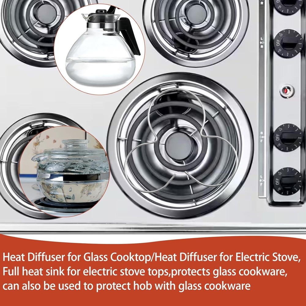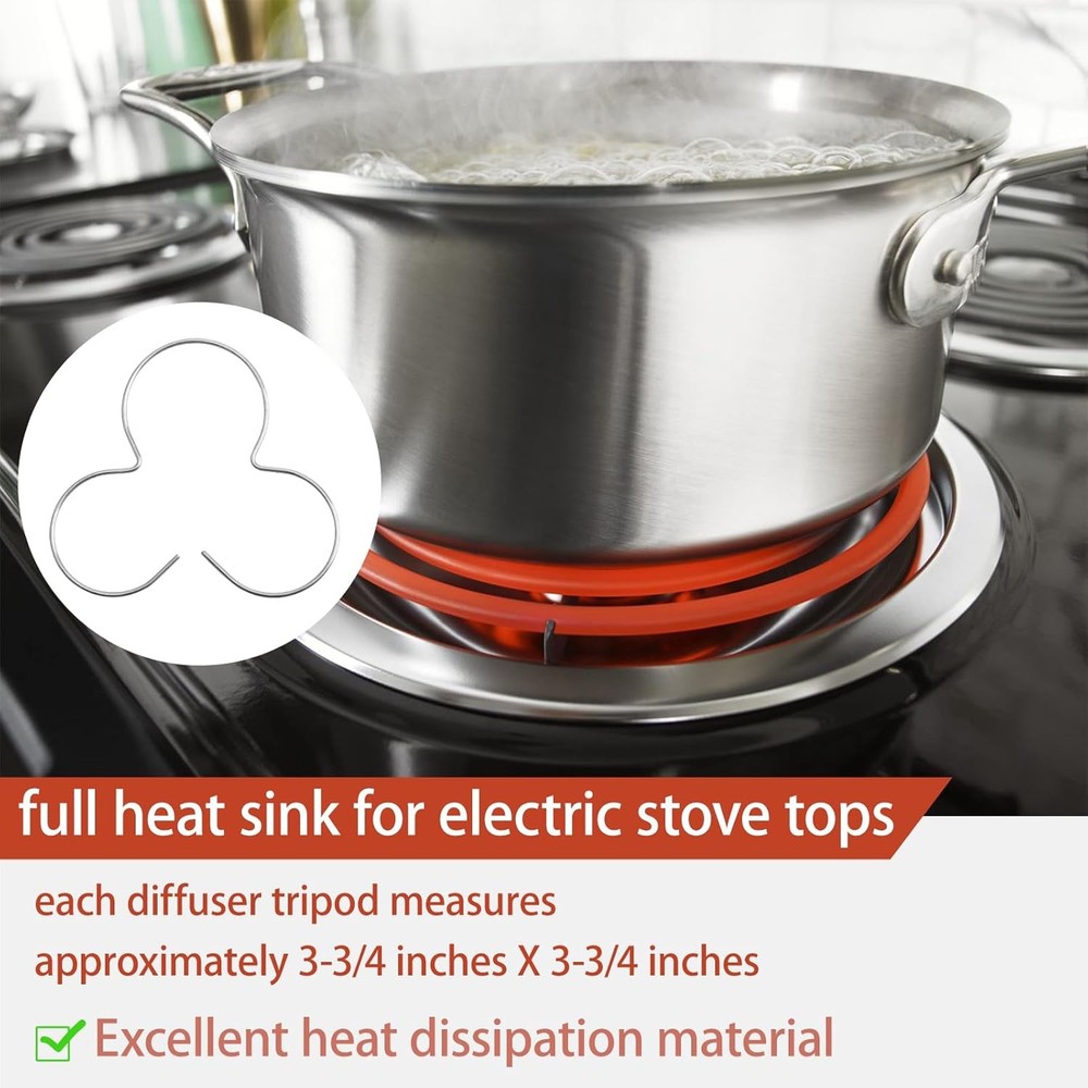 Free eBay listing template designed by dewiso.com Glass Cooktop Heat Diffuser for Electric Stove, Full Heat Sink Protects Glass Cookware, Pack of 4 FREE AND FAST SHIPPING! About this item Product: full heat sink for electric stove tops, brand new, pack of 4, each diffuser tripod measures approximately 3-3/4 inches X 3-3/4 inches Function of the heat sink: disperses the heat so it doesn't break the glass. and lifts anything placed on it. It is an essential accessory for all electric stove tops How to use: place them between a glass jug or cup and the top element of the electric hob, placing a glass teapot or cast iron pots and pans on the heat sink won't move them! Excellent performance: our heat sinks are made of high quality galvanized steel material for durability and reliable performance Cleaning method: hand wash with warm soapy water, rinse and dry thoroughly. If it is a little rusty, you can dip it into vinegar, wash off the rust with a toothbrush, re-spray it with oil and burn it off so that it will be re-coated with a layer of protective oil, which will prolong its service life Product We offer a 30-Day Return Policy on items which you are not completely satisfied with. You have the option for a full-refund or an exchange of the item. No returns are available on items shipped outside of the US . Shipping We offer Free Shipping to the US and ship within 2 business days of payment, usually sooner. We use UPS express shipping. That's why your products are usually delivered within 3 days . Contact We try our very best to make sure every customer is completely satisfied. If there's a problem , message us! We're happy to help. 24/7 live chat available.