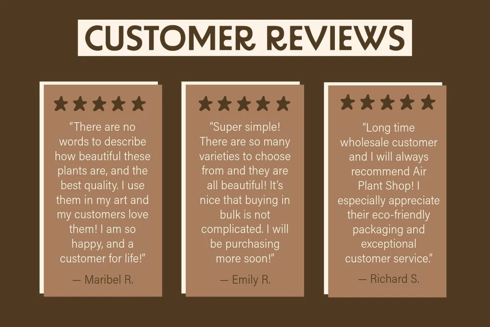 Communication was great throughout the buying experience. The air plants arrived very quickly after my order. They were a little expensive though. So far they look healthy. Have bought from this seller before and had good success.