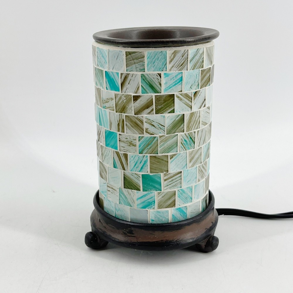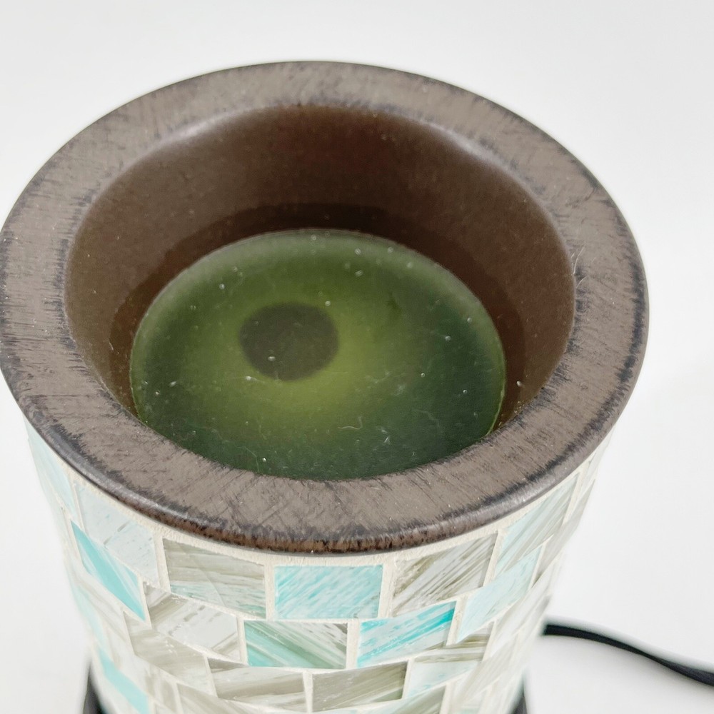This warmer is absolutely gorgeous—the teal, green, and gray sea glass colors give off such a calming vibe. It warms my wax melts perfectly, filling my room with lovely fragrance. The height is just right, and it looks so elegant lit up. A must-have for cozy spaces!