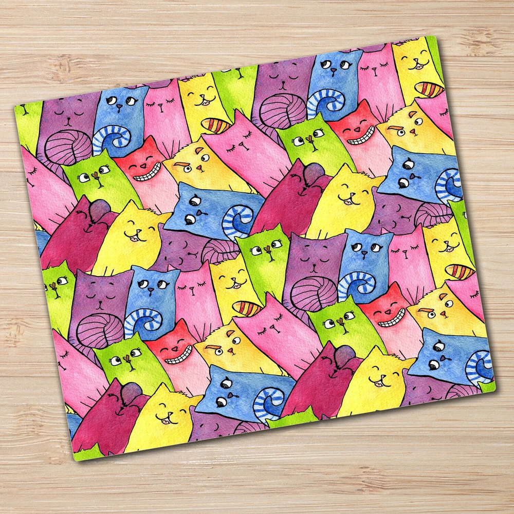WALL MURALS IKEA ® DECALS REFRIGERATOR MAGNETS DOOR STICKERS Tempered glass chopping board 4 mm thick safety glass (real float glass), heat resistant, scratch resistant, impact resistant, smudge-proof and waterproof, high quality image print with vivid colours, colourfast by UV protection, board with non-slip rubber feet, protects your work surface from chopping and heat, choose from thousands of modern designs dimensions: 60 cm x 52 cm - (23,6" x 20,5") Glass Induction Ceramic Hob Cover Happy Cats Animals Watercolour Pets 60x52 Glass chopping board - made of high quality 4 mm thick tempered glass. Product offers the excellent level of strength and durability. It is heat resistant, scratch resistant, and impact resistant. Non-slip rubber feet ensure good adhesion to the ground during use. The chopping board is great for protecting and saving your kitchen workspace. Unique and modern design of our choppping boards will be a stylish addition to your home. Our offer includes custom-size. We can create a custom listing for you on eBay. The handling time / manufacturing time for a made-to-measure chopping boards is 15 workdays. - The item is made freshly and specially for you. - Please note the 3-workday handling time. The delivery time is additional 3 workdays. - Please note that various manufacturers use different settings for their computer screens. Therefore, the colors of the delivered pictures may differ from the colours displayed on your screen. - Please note that the product you are buying is made of polyester material print under glass and the offered motifs and material textures such as "fabric", "woodgrain", "brushed stainless steel" or "bricks" are just printed. - Glass boards and kitchen splashbacks should not be washed in the dishwasher or left to soak in water. - Some induction hobs may sound an alarm when the glass board is placed on top - please ensure our product is compatible with your appliance. - Our kitchen chopping boards and splashbacks are only heat resistant on the glass side, i.e. the upper part is heat resistant (e.g. you can place a hot pot on it). The laminate/foil is not heat resistant, the product can not be placed on a hot pot or on a running cooker. - The minimum distance of the chopping board/panel from an running cooker (burner) is 20cm. High Safety Individual Style Highest Quality Vintage Vintage is a style that blends the past with the present - it is about going back to the roots by bringing back the characteristic elements of the interior design of the past. Opposing current trends, it emphasizes the unique and individual character of the space. Inspired by the history of design, VINTAGE WALLPAPERS make numerous references to classic patterns that draw on past trends. Floral When we think about beauty, one of the typical things that come to mind are flowers - the fantastic works of nature that keep delighting us with their extraordinary forms, countless colors and marvellous smells. They are a true pleasure to our eyes, our nose... They are the most beautiful decoration you can think of and always make a good gift. Kids Add some magic to your nursery! Make childhood more fun and colorful with Kid's collection wallpapers. It is a combination of shapes, motifs, patterns, flowers, animals, toys and a lot more! Express the individuality of children and have fun! Patterns Dots, spots, polka dotted, chequered, squares, triangles, stripes straight or not, something that makes sense and something completely abstract... Our range of PEEL AND STICK PATTERNS WALLPAPERS offers a wide variety of geometrical shapes and an abundance of ideas on how to turn a seemingly simple and unattractive object into an unusual wall decoration. Exceptional color intensity is achieved through the use of dyes with the latest nanotechnology! We do not use solvent inks! That is why our products are extremely durable and have no harmless impact on health. Born and raised in the Hamburg area, Germany. I love to travel and my head is always filled with great ideas. I've always adored everything on my walls and would daydream that someday I could open a wall murals shop. Now I work with Coloray team so I am doing some- thing that I love! Feel free to drop us a message at anytime. We are standing by to answer all your questions! Main colour: Multi-Coloured Theme category: Plants & Flowers Key words: glass, tempered, worktop saver, kitchen, chopping board, cutting board, utensil board, induction, ceramic hob cover, worktop saver, worktop protector, serving board glass, surface protector, clear, non-slip, large, gift, baking, housewares, home decor, happy cats, cats, watercolour, animals, renter, renters, cats colorful,