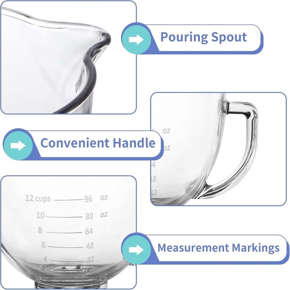 Water Cooler Dispenser Base Pedestal Height Extender Bottom Loading/Bottleless 72.38 USD 76.19 USD Free shipping 5% off 4 Wheel Rollator Walker Seat Steel Rolling Walker Height Adjustable 7.5" Wheels 92.16 USD 97.01 USD Free shipping 5% off Rifle Shooting Rest Tripod with V Yoke Bracket V Shaped Gun Rack for Hunting 50.03 USD Free shipping 58.3"Wheel Rotary Edger Rotary Shear Sidewalk Manual Lawn Edger Strong 3 Section 39.24 USD 41.31 USD Free shipping 5% off 16 inch 3 Speed Oscillating Wall Mount Fan w/Remote Control Timer Auto Shut Off 44.21 USD 46.54 USD Free shipping 5% off 2-Pcs 15x6.00-6 Tire Wheel Assembly Pneumatic Replacement Lawn Mower Front Tires 69.8 USD 73.47 USD Free shipping 5% off Dog Bark Deterrent Device Stops Bad Behavior Long-range Ultrasonic Shock Collar 39.34 USD 41.41 USD Free shipping 5% off Smart Automatic Cat Feeders for 2 Cats 7L Cat Food Dispenser with Double Bowls 47.62 USD 50.13 USD Free shipping 5% off 15PC Glass Food Storage Containers Meal Prep Containers Airtight Glass Bento Box 38.73 USD 40.77 USD Free shipping 5% off 5PC 72 oz 9 Cup Large Glass Airtight Food Storage Containers with Lids Oven Safe 38.3 USD 40.32 USD Free shipping 5% off Compact Corner Tool Rack Holds Up to 25 Tools Easy to Assemble for Home US 41.6 USD 43.79 USD Free shipping 5% off 21V Cordless Angle Grinder Kit with 10000 RPM Brushless Electric Motor NEW US 59.37 USD 62.49 USD Free shipping 5% off Bowl Material Glass Number of Pieces 1 Style Classic Special Feature Sturdy About this item QUALITY MATERIAL: Made of thick glass, easy to clean, dishwasher-, microwave- and refrigerator-safe SIZE: Bottom diameter is 3.66", mouth diameter is 10.2", total height is 7.48", capacity is 5 quart CLEAR MIXING BOWL: Being able to see the bottom of the bowl from the outside, so you can know everything's all mixed well, makes baking more of a joy THOUGHTFUL DESIGN: Embossed measu rement markings on the side of the bowl is easy to read, handle helps grip, and the pouring spout makes it easier to pour the contents, handy for use COMPATIBLE WITH KITCHEN AID TILT-HEAD STAND MIXER: Compatible with Artisan KSM75, KSM90, KSM95, KSM100, KSM103, KSM110, KSM150, 5KSM125, 5KSM150, 5KSM175, 5KSM7580, RRK150, K45, K45SS and more models You may also like 1 Gal Water Based Oil-Modified Polyurethane Gloss Clear Protective Poly Coating 65.0 USD Free shipping 1HP 3434 GPH Sump Pump Submersible Clean/Dirty Water Pump Portable Utility Pump 47.29 USD Free shipping Cast Iron Griddle Press w/Handle Bacon Press Grill Press Burger Press Meat Press 24.17 USD Free shipping 3 Drawer Chest Wood Bedroom Furniture Storage of Drawers for Small Space Home 88.4 USD Free shipping Portable Air Conditioner 5-In-1 AC Evaporative Air Cooler Air Cooling Fan Black 41.78 USD Free shipping Werewolf Animatronic with Lights and Scary Sound Scarecrow Outdoor Prop NEW US 105.65 USD Free shipping Waterproofing Spra+Stain Repellent UV Protection for Boat Covers Car Covers US 57.65 USD Free shipping 0.68-In Horizontal Mattress Support Wooden Bunkie Board/Bed Slats Twin Size 39" 42.75 USD Free shipping Heavy Duty 50lb Push Broadcast Spreader w/8-in Poly Wheels Garden Seed Spreading 67.96 USD Free shipping 26" Whirlwind Women's Mountain Bike Lightweight Aluminum 21-speed Bicycle Gray 153.4 USD Free shipping Porch & Floor 1 gal. Light Gray Satin Interior / Exterior Paint with Primer 39.57 USD Free shipping Select Perforated Kitchen Roll Towels 2-Ply 8"x11" White 70/Roll 30 Rolls/Carton 42.15 USD Free shipping
