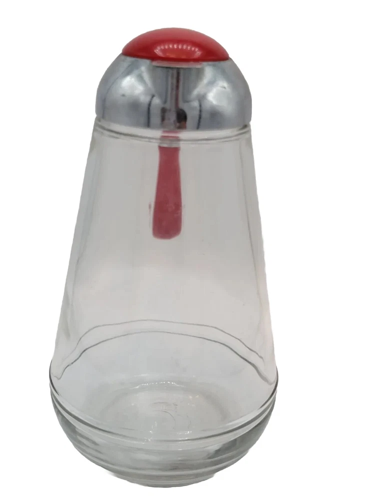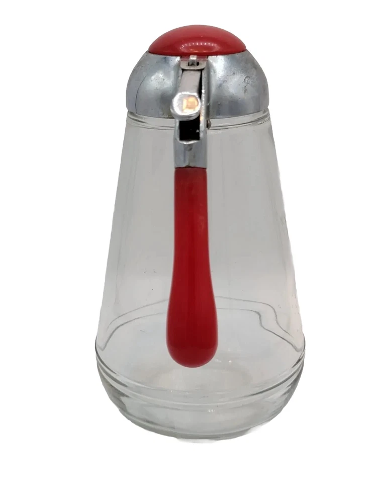 Vintage Glass Syrup Dispenser With Red Bakelite Handle And Top. Stamped E1269 * 6.5" H x 5.5" W x 3.5" D. * Vintage. * Glass syrup dispenser. * Red Bakelite handle & top. * Stamped E1269 into glass. * Screw off top. * Note: it does have some chips on glass at top which is covered by lid (as shown in photo). Does not interfere with use. See all photo's. NOTE: All shipments are packed with care for a safe arrival to you. I do my best to describe each item to the best of my ability. Please always see all photo's shown to see actual condition of the item being sold. Everything is sold "as is". Make sure to check out all my other items I have for sale in my store, Roxy's Relics. You can follow me to see what new items I add daily. Thank you for visiting my store. PAYMENT: Payment on ALL purchases (including offers made & accepted) must be paid within 8 hours. If not, the order will be cancelled & the price will go back to original price. My policy supersedes eBay policies on this. CONDITION: Please see all photo's for complete condition of item.