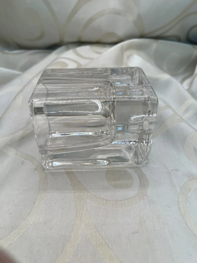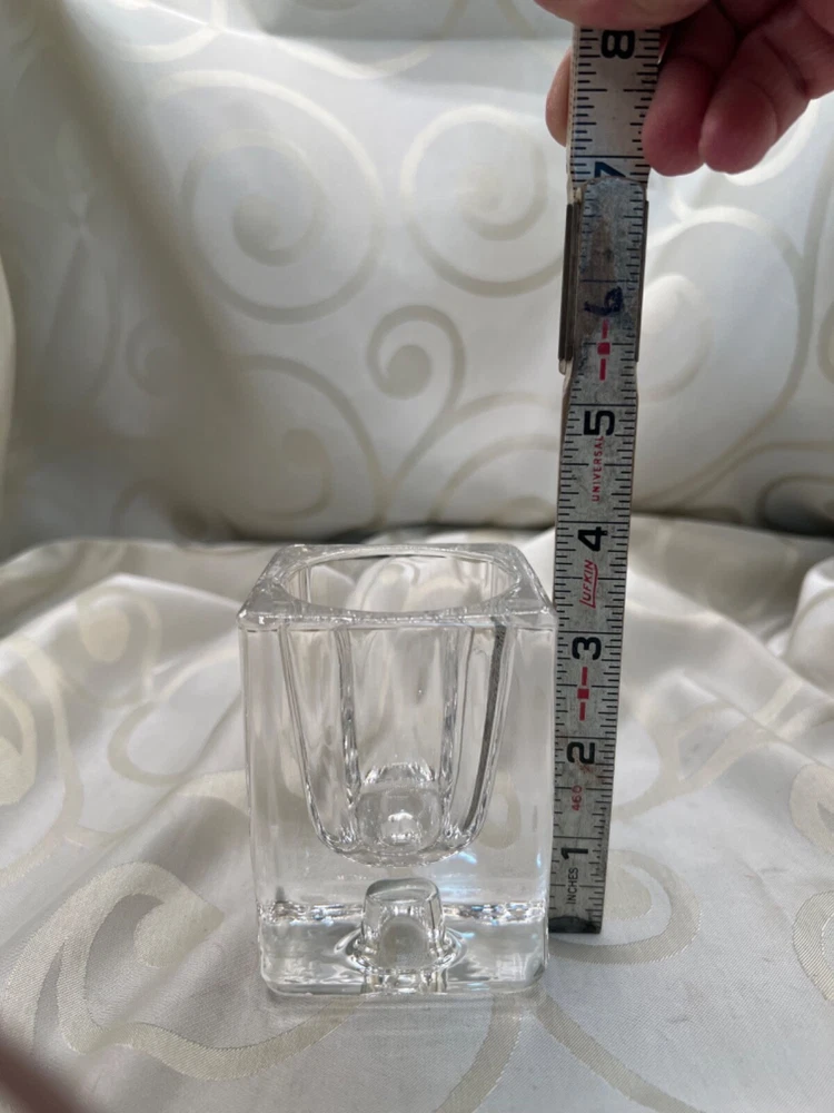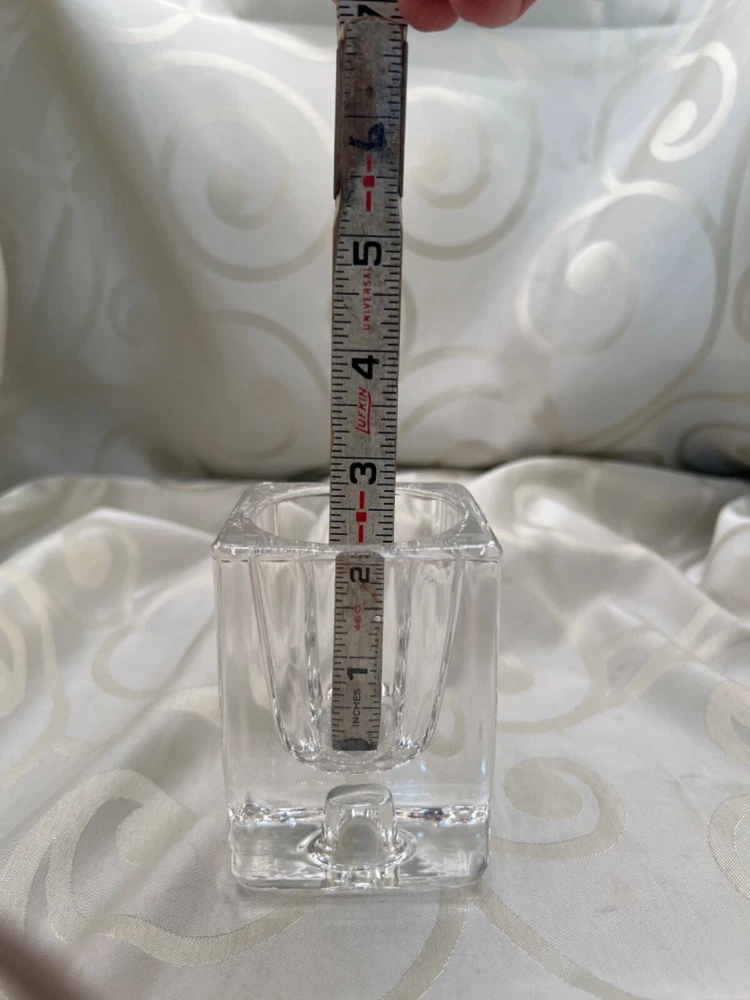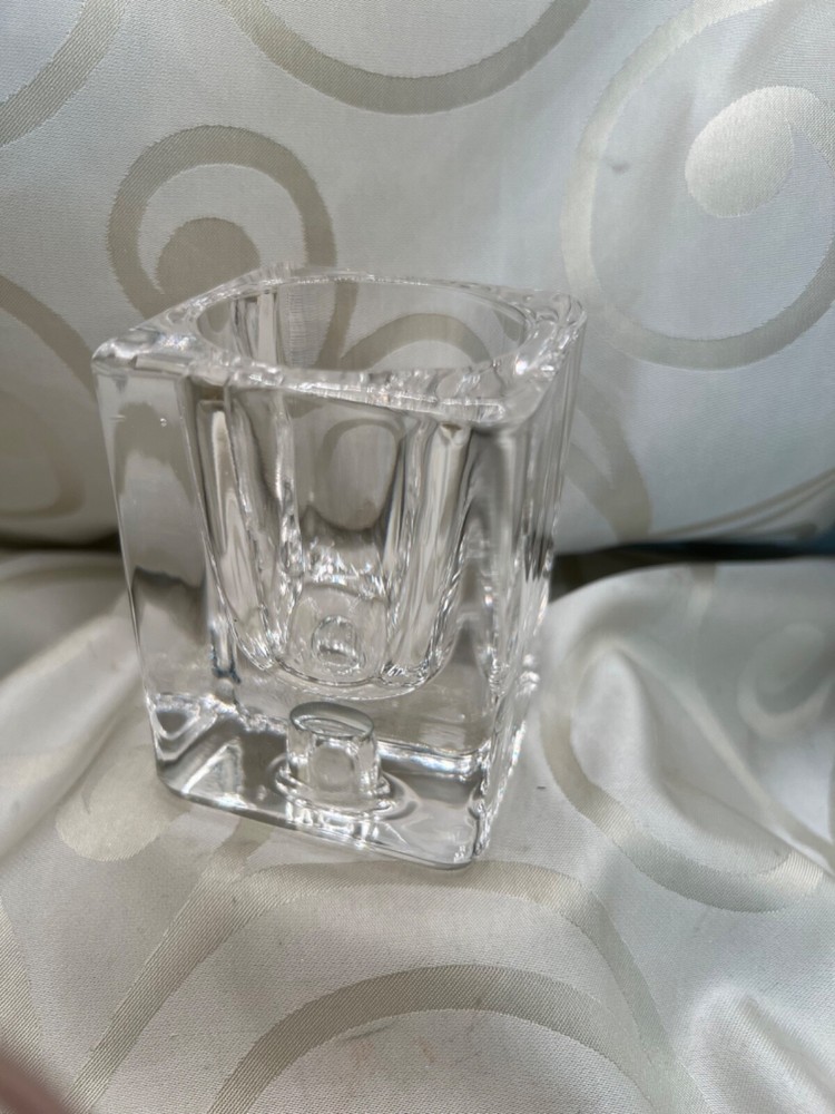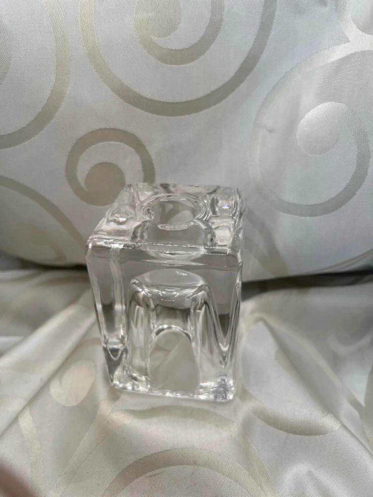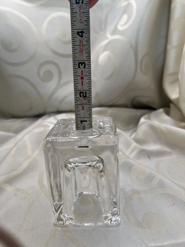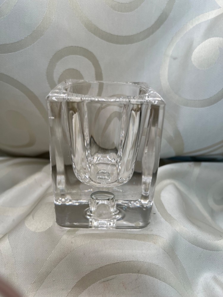 The glass cube taper or small pillar candleholder is a modern, clear glass candle holder with a smooth finish. It is designed to hold one candle and is suitable for all occasions. The cube shape adds a contemporary touch to any decor. Made from glass, this small candle holder is perfect for adding a stylish touch to your living space. You can put a taper candle in one end and flip it over and put a pillar candle in the other end.