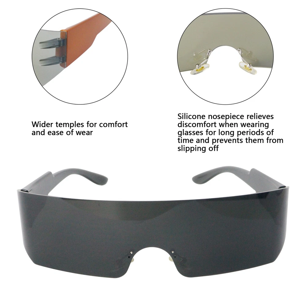 Specification: Lens Color: Red/Blue/Black(Please note: there are slight color differences in the photos) Material: PC(Lens)/TPU(Frame) Weight: about 27.2g Size: 14.8*4*12.7cm(Expanded) Feature Description: UV400 PROTECTION UV400 eye protection effectively filters & blocks glares.Keep your eyes healthy and gives you a natural & clear vision, durable & shatterproof. High Quality Lightweight plastic frame, thick but slim , not easily deformed, no metal material, long wear does not press nose give you a unique and comfortable wearing experience. Vintage Design Not only is the simple and compact design makes thick frame looks very delicately,but also the rectangle shape frame makes the overall look of the sunglasses more retro. Suitable Perfect choice for outdoor activities such as walking, driving, shopping, travelling, taking photos, and is suitable as high fashion accessory and daily wear all year round.