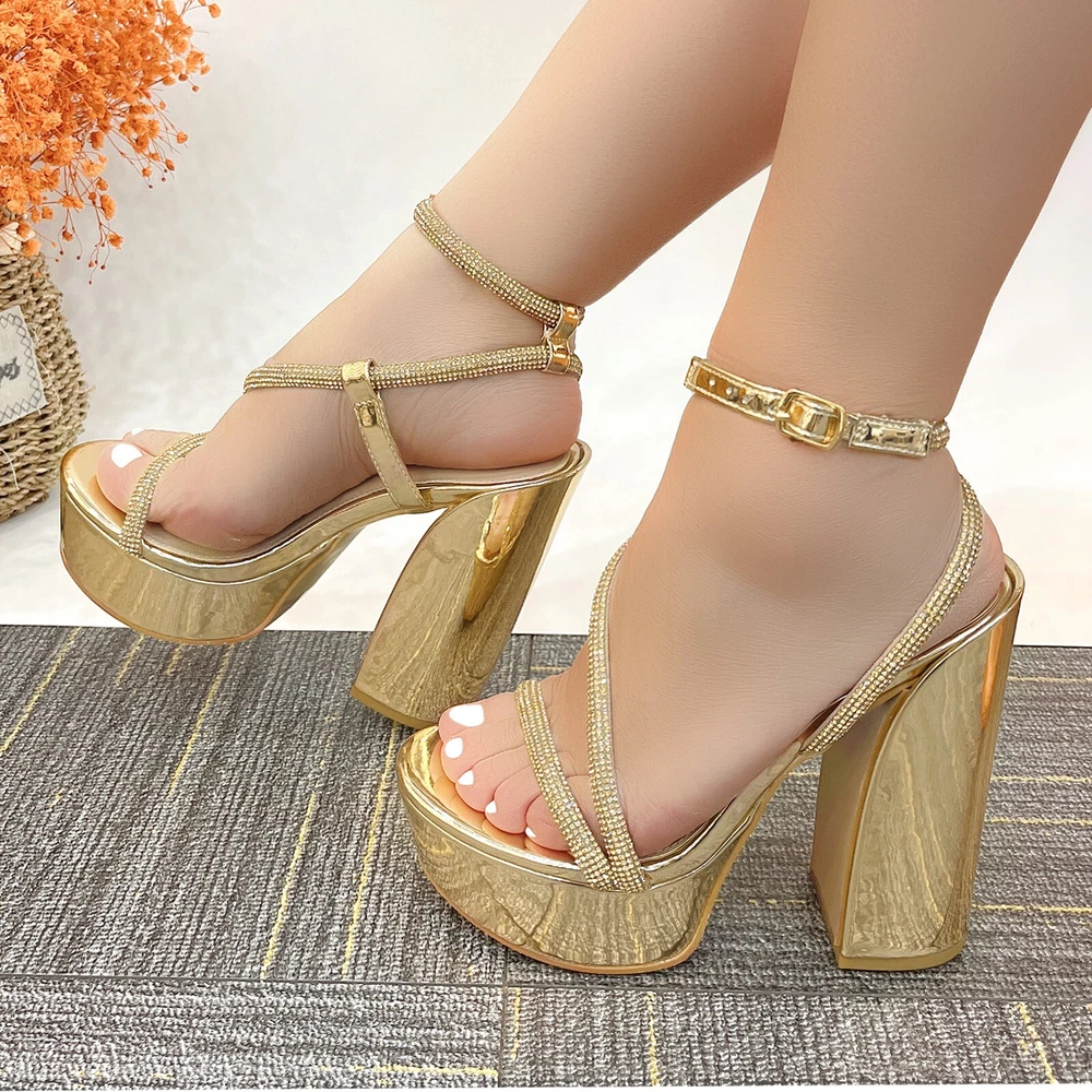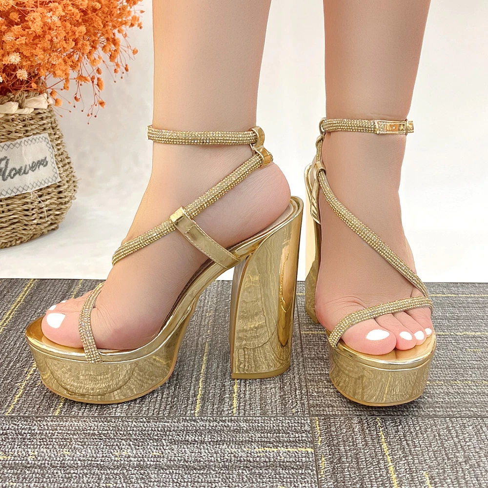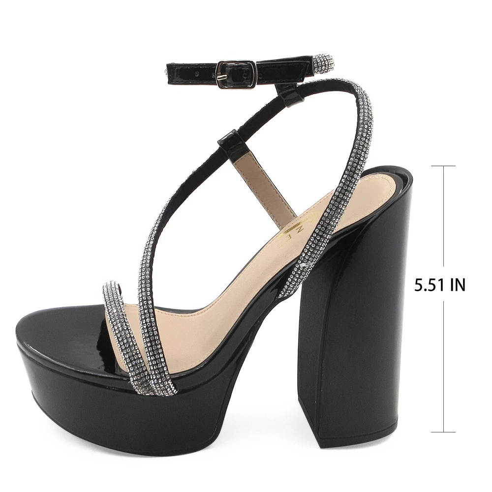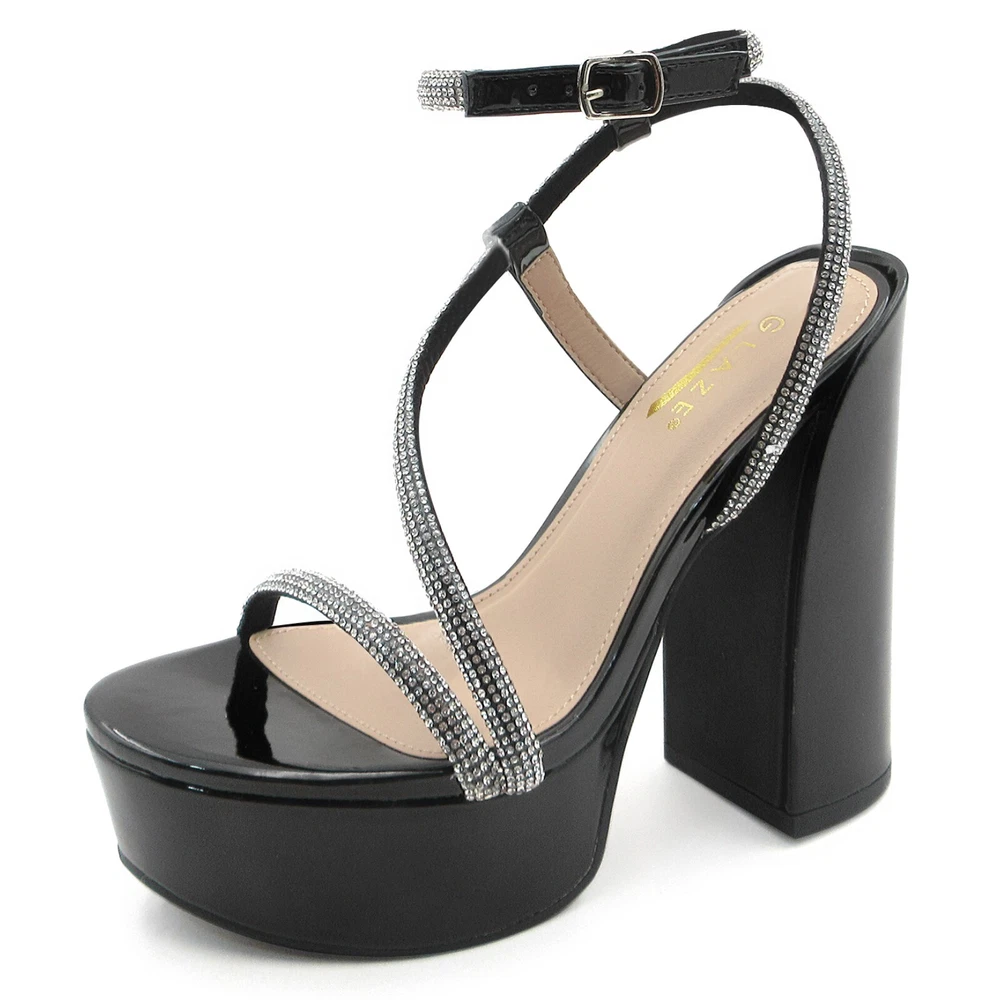 Description: These Glaze platform sandals for women feature a 5.5-inch block heel with crystal rhinestone straps. The sandals have a solid pattern with a buckle closure and are suitable for various occasions such as parties, casual outings, and formal events. They have a strappy style with PVC lining, rubber outsole, and are made of polyurethane with PVC insoles. Payment Information: We Accept PayPal We Accept Credit Card via PayPal Shipping Information: We provide Same Day FREE SHIPPING domestically within the U.S.A USPS Priority (2-3 business days) & USPS Priority International (14 days with tracking) We reserve the right to charge additional shipping fee for reship items due to wrong shipping address provided during checkout. All orders before 5PM EST will ship out same day!, Monday - Friday Ships Same Day with TRACKING! Refund & Return Policy: We offer a 30 day return policy on all items purchased from us. Please contact us within 30 days after receipt of the item for a return. Do not ship the item back to us without contacting us first. Return shipping is responsibility of buyer. These Glaze platform sandals for women feature a 5.5-inch block heel with crystal rhinestone straps. The sandals have a solid pattern with a buckle closure and are suitable for various occasions such as parties, casual outings, and formal events. They have a strappy style with PVC lining, rubber outsole, and are made of polyurethane with PVC insoles.