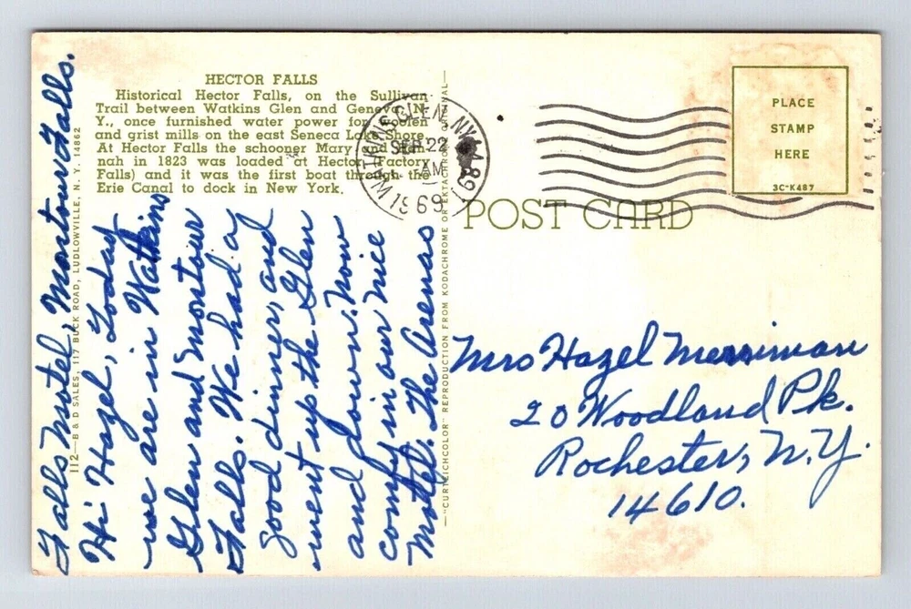 Glen & Geneva New York Hector Falls Scenic Landmark Chrome Cancel WOB Postcard
