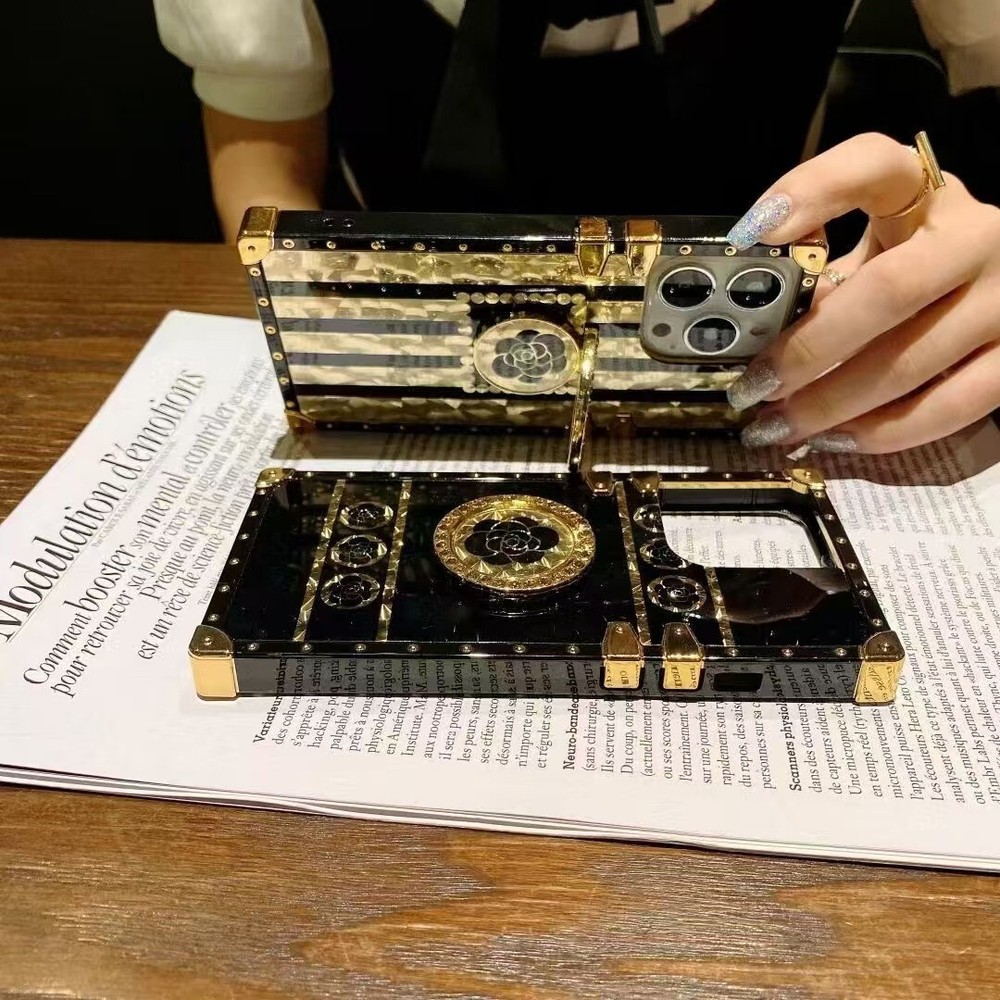 Glitter Bling Gold Flower Case with Ring for iPhone 16 Pro Max 15 14 13 12 11 XR XS