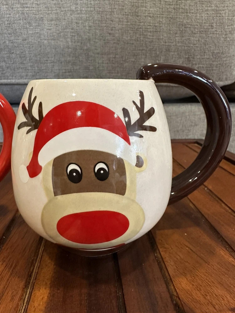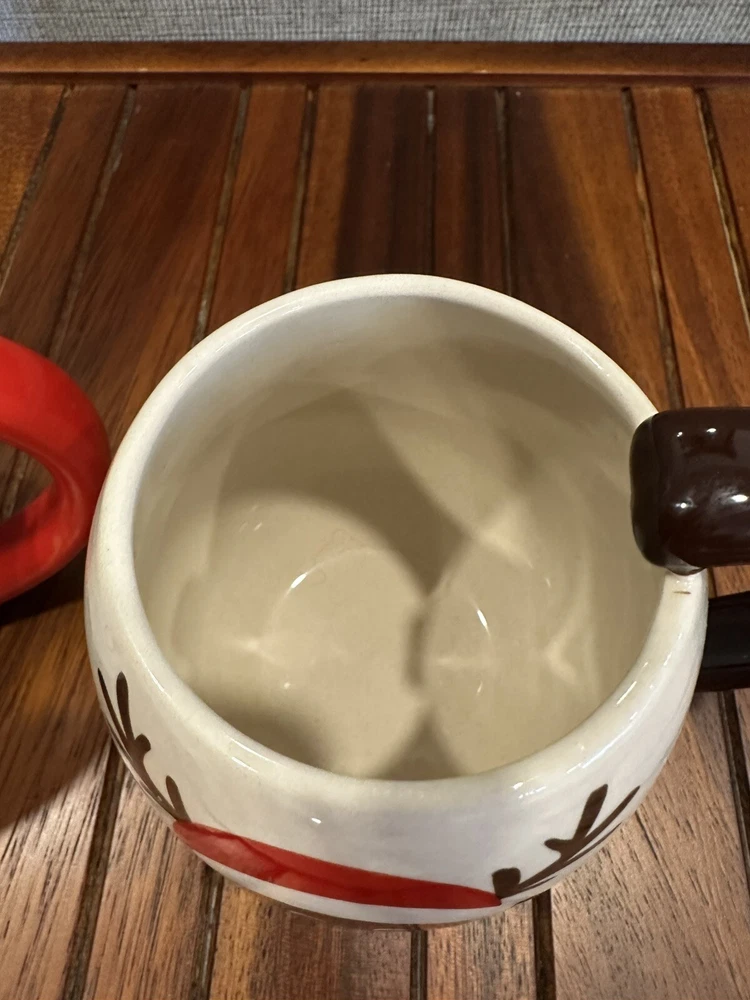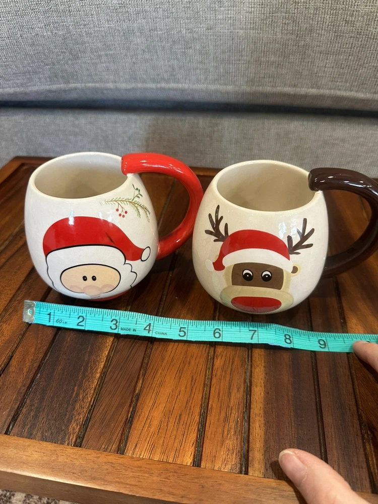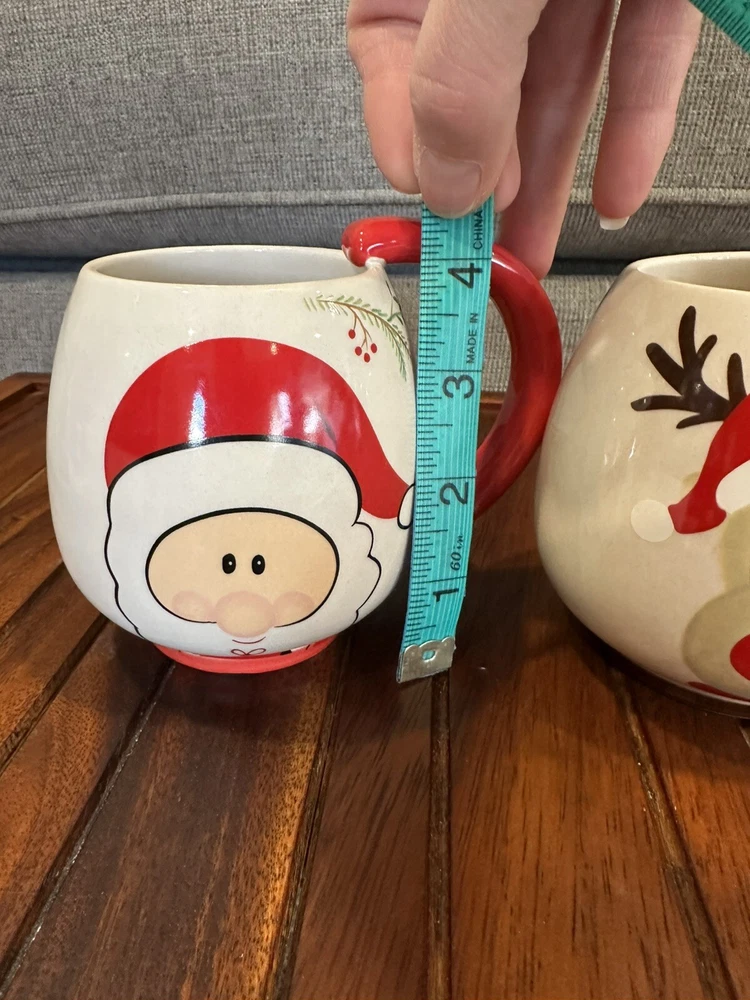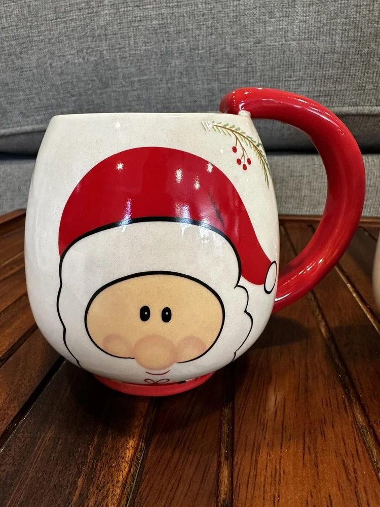 Global Design Connection Santa & Reindeer Christmas Mugs. Santa mug has small chip on bottom only visible when you turn the mug over. See photos for details. Qq-1058-6-1/25’