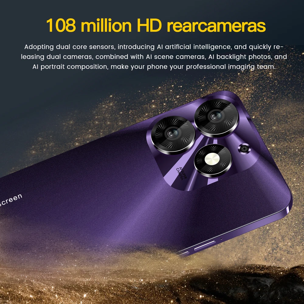 7.3 inch Incell Screen HD Android Smartphone 4G 5G Cell Phone Dual SIM OTG GPS Factory direct sales, better quality but lower price is our target and mission! Features: - 7.3 inch Full Display The Spark 10 Pro delivers the viewingexperience you always wanted, With a massive 93%screen-to-body ratio on a 7.3"inch screen - 50MP Front CameraClear and Stylish Selfies The world-leading 50MP front camera turnsyour every selfe into a work of art Experience greaterbrightness, color vibrancy, clarity and dynamic range.even in the dimmest light, Whenever you needit. your Spark 10 Pro is right there with you, capturing everymoment with crystal-clear precision, Turn your selfiesinto masterpieces and shine in every photo - Rear HD camera The Spark 10 Pro features a 108MP camera combination. The main camera sportsa large f/1.8 aperture and 1.28um pixels, This strong combination boosts photosensitibityin backlight or low light, Just point and shoot, and Spark 10 Pro will makesure your pictures remain clear and bright - Face Access The Spark 10 Pro also supports facial recognitionUpon activation, Spark 10 Pro scans your facial features and unlocks instaneously. Accessing your phone has never been so easy, or so fun - Powerful Performance The Dimensity 9200+ Deca Cores mobile platform with 10mm process technology makes young people who love the young and stiand other popular games.The game ison and lower - Android 13.0 The new interactive design makes the operation simple and simple, the use of themobile phone is so simple and straightforward, everything is handy - Dual SIM card supports TF card Dual card dual standby, card slot does notdistinguish between the main and the deputy, supporting the worlds 50 major communication carrier networks Specification: 1.Model No.:Spark 10 Pro 2.Platform : Dimensity 9200+ 3.Standby: Dual sim dual standby(A slot support SIM card, another slot support SIM card or TF card) 4.Screen: 7.3 HD+ Full Display 2400*3200 5.Speaker: 1511 Box Speaker 6.Frequency: GSM850, 3G: WCDMA2100MHz,5G LTE 5G7.Vibration: Support 8.Colors: Black/Tuhao Gold/Dark Purple/white 9.Memory: 16GB RAM+1TB ROM 10.Multi Media: MP3/MP4/3GP/FM Radio/Bluetooth 11.Camera: 50MP+108MP 12.Multi Function: Full screen, Face recognition, Dual SIM, Wifi, GPS, Gravity Sensor, Alarm ,Calendar ,Calculator ,Audio recorder ,Video recorder, WAP/MMS/GPR, Image viewer,E-Book,World clock,Tasks card rear flash IML rear cover 13.Languages: Multi-language support 14.Others: Android OS 13.0 System 15.Battery:7800Mah Lithium-ion battery 16.Type-C plug 17.Ultra unibody Attention: The mobile phone does not support the telecom CDMA 2G 3G network. Package Included: 1 x Smartphone 1 x Charger Adapter 1 x Headphones 1 x User Manual 1 x Phone Case 1 x Protection Film