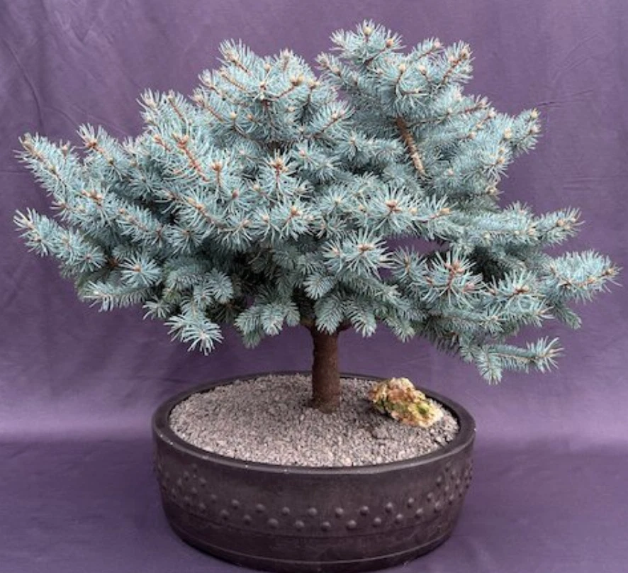 Globe Blue Spruce Bonsai Tree(picea pungens 'Globosa') Christmas tree 42 years old, 20" x 21" x 22" tall.Outdoor evergreen bonsai tree, grown and trainedPotted in a 16" brown oval mica container. Suitable humidity/drip tray is recommended The Globe Blue Spruce is a very well-known dwarf Colorado Blue Spruce. The bright blue needles hold their color all year long, but are a brighter hue in summer. Provides a unique accent for that special spot in the back yard. Payment Payment accepted through Paypal. Shipping We do not offer local pickup or combines shipping. We do not ship to APO's. We shipping to PO Boxes. We only ship to the lower 48 states and do not ship to Alaska/Hawaii, US Protectorates, APO/FPO, Puerto Rico, Virgin Islands (U.S.), Bermuda, Greenland, Mexico, Saint Pierre and Miquelon Return We want you to be happy with your purchase. You may return items in its original condition within 30 days. Please to process a return.