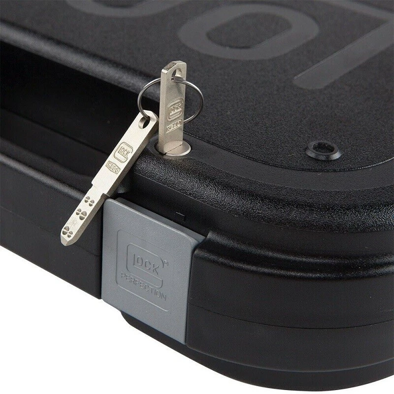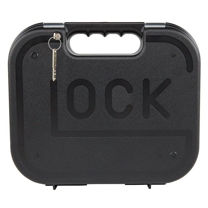 Our eBay Store Glock OEM Lockable Single Handgun Gun Case w/ Bore Brush & Cleaning Rod CASE2929 The Glock OEM pistol case is made of impact resistant polymer and will fit Glock handguns. Features: Includes Bore Brush, Cleaning Rod, and Owner's Manual Color: Black Lockable: Yes Size: 10.5" x 9" x 2.5" Glock Logo