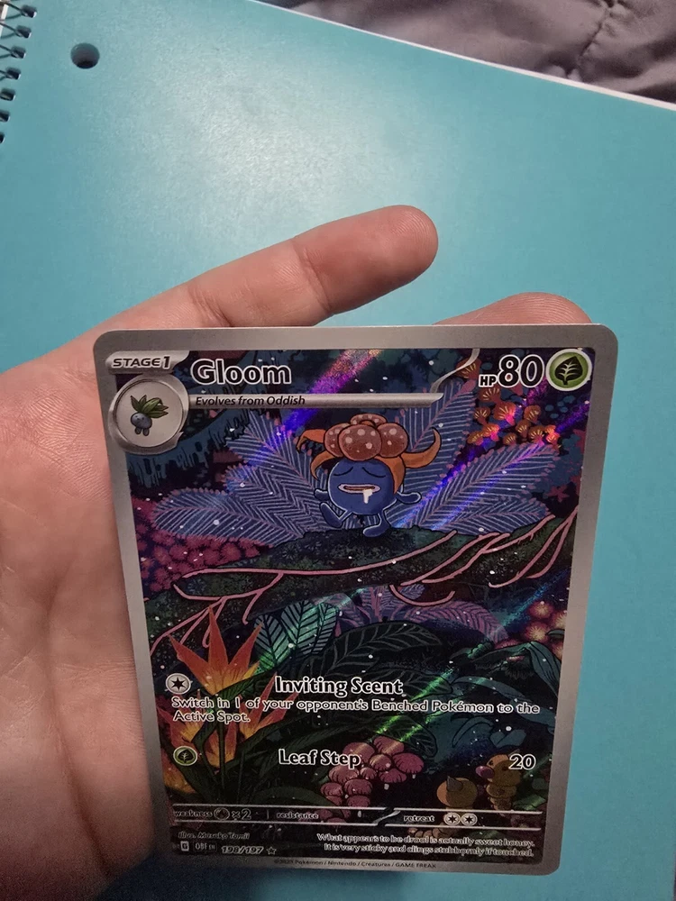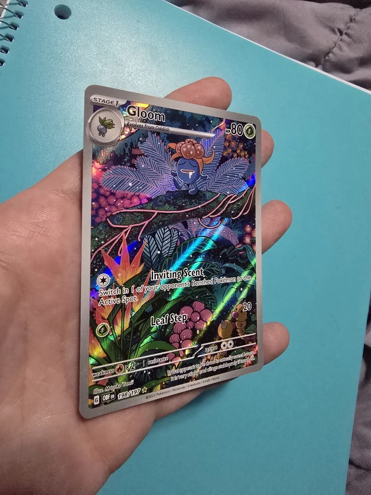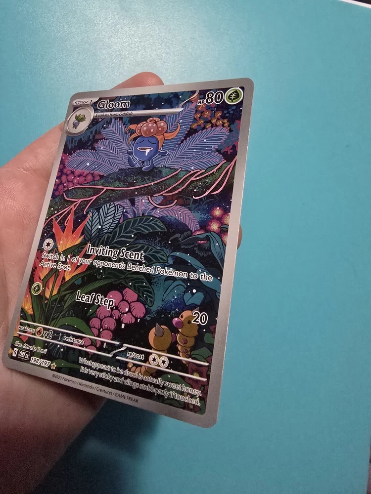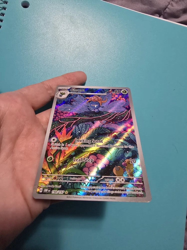 Creature/Monster Type: Flame Game: Pokémon TCG Card Type: Pokémon Language: English Card Name: Gloom Card Number: 198/197 Rarity: Illustration Rare Set: Sv03: Obsidian Flames Finish: Holo HP: 80 Stage: Stage 1 Manufacturer: The Pokémon Company