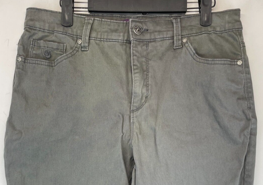 Elevate your wardrobe with these stylish Gloria Vanderbilt Amanda 2.0 pants. These chino-style trousers feature a high-rise waist and straight leg design with a slimming effect, making them perfect for any occasion. The gray solid pattern is versatile and can be dressed up or down, while the button and zip closure add a touch of sophistication. Made from a comfortable knit fabric, these pants are machine washable for easy care. The 27.5-inch inseam and waist measurements can be viewed in the photos provided. These pants are ideal for the fashion-conscious woman who wants to look her best in any setting. Very good preowned condition with normal preowned wear and no issues. Please see all photos. For clothing specifically, see photos for all measurements and/or any issues if applicable. Pay close attention to the measurements as the size of the garment may quite possibly be different than the actual measurement(s) due to washing, shrinkage, or stretching as these are used clothes. The size in the title is the size on the tag of the garment. See photos for measurements of actual measurements as they may differ. ALWAYS CHECK THE MEASUREMENTS IN THE PHOTOS. This will remove any questions on measurements as well as always cover the possibility of human error in the listing(s) in the case of a typo or oversight. All clothing and shoes have been washed/cleaned, and comes from a smoke free environment. If shoe trees appear in the photos, they are for photography purposes only to illustrate how the shoes look filled out, and are not included. I am available for questions. I accept or negotiate reasonable offers. Have an amazing day. Thank you.