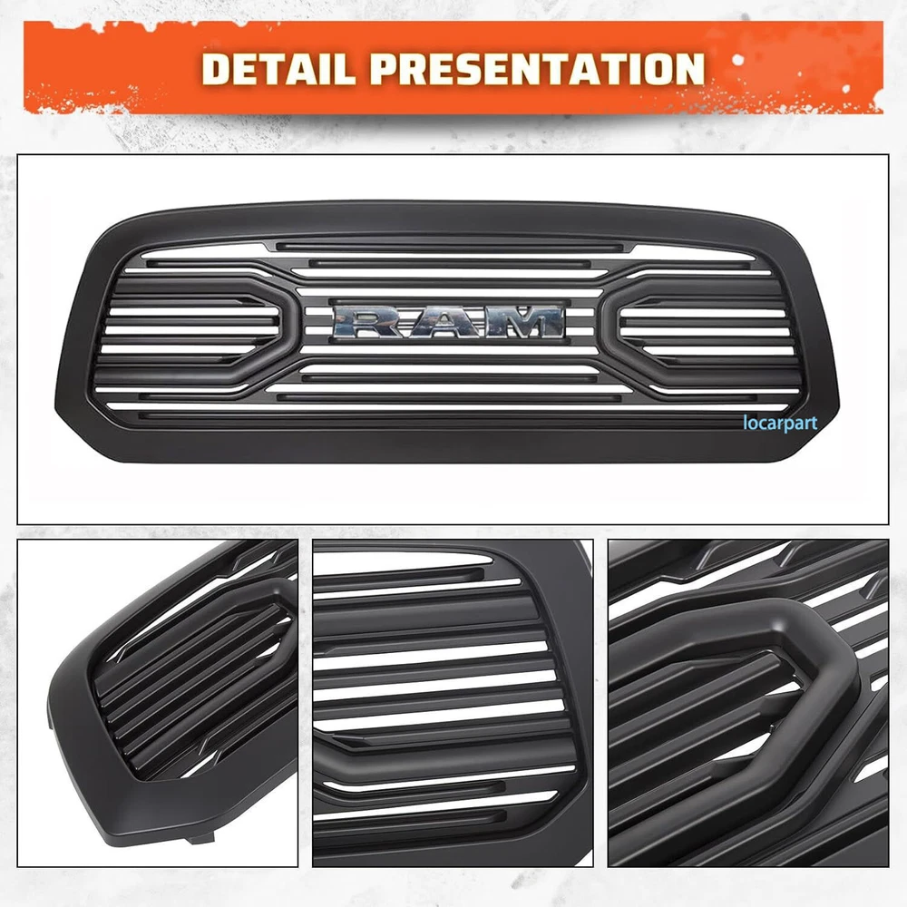 Product Description Specification: Style: New Raptor Style Color: Gloss black Grill with Chrome Letter Material: ABS Plastic Type:Front Grille No drilling and cutting required. Feature: 【Extremely Durable】Manufactures from a premium quality ABS material, which is known for its light weight, superior durability and impact resistance. 【Unique Styling】This grille comes with honeycomb air intake holes, it offers greater breathability. It is not only designed to easily replace your stock grille but also add a much more aggressive look to your vehicle. 【 EASY INSTALLATION 】 : Just unscrew your old grill and screw this one in with existing bolts. The pre-drilled holes match up your vehicle and the installation is no sweat. Tips: installation video can be found by searching “ram1500 grill 2013 install” on YouTube. Package Include: 1x Gloss Black Front Grille with Chrome Letter About Us Payment Terms Returns Contact Us Figocarpart is one of US’s fastest growing online retailersWith our best effort, we are now trusted by more than 100,000 customers nationwide. We are dedicated to offering you an unrivalled choice of products with unbeatable low price and best quality. We ONLY accept Paypal. We ship to your eBay or Paypal address. Please make sure your eBay ID、contact and Paypal address is correct before you pay. Thank you! 1.If item is defective and not working on arrival, please contact us within 7 days of receiving the defective for repair or refund. Item may be returned within 30 days of purchase upon your receipt.All items returned must contain all original packaging materials. 2.This item have 1Year warranty. We offer free repairing service within 6 months from the date of purchased. If damaged is caused by undue wear and tear, dirt, misused, improper installation/operation, accident or repaired by unauthorized person, the warranty becomes void. 3.All returns must have prior authorization. Please message us firstly if you have any problem. Please contact us before you return the item. 4.Buyer is responsible for the return postage. If you ask for a refund during valid period, we will offer you a refund without postage charges. Shipping and handling charges, insurance are not refundable in any case. We are only responsible for once re-sending expense for replacement due to defects. Please contact us firstly if you have any problem. * We give you a 30 days money-back guarantee to return any items purchased, no questions asked, hassle-free. * You can return for refund or exchange same product or different product (difference of price will be charged) within 30 days after you receive the item. * Any returning or exchanging items must be in the original package and new condition. We reserve rights to refuse refit or damaged items (caused by buyer) for return and exchange. * No returns will be accepted if you contacted us after 30 days of receiving the item. * Return fee: Buyers are responsible to pay the return shipping fee. 15% restocking fee on total price will be charged and be deducted from the refund total. * Exchange fee: No restocking fee will be charged, however Buyers are responsible to pay the return shipping fee and exchange reshipping fee, depending on the weight of merchandise. * Email our Customer Service Department first before return the item back. Please specify your item number, your eBay ID, and the reason for the return. Click here to contact us directly. Any questions, pls contact us via ebay message or email us.We will reply your message within 48 hours. If you do not receive our reply within 48 hours, pls post a message again because sometimes our message system may block some emails. About Us Figocarpart is one of US’s fastest growing online retailersWith our best effort, we are now trusted by more than 100,000 customers nationwide. We are dedicated to offering you an unrivalled choice of products with unbeatable low price and best quality. Payment We ONLY accept Paypal. We ship to your eBay or Paypal address. Please make sure your eBay ID、contact and Paypal address is correct before you pay. Thank you! Terms 1.If item is defective and not working on arrival, please contact us within 7 days of receiving the defective for repair or refund. Item may be returned within 30 days of purchase upon your receipt.All items returned must contain all original packaging materials. 2.This item have 1Year warranty. We offer free repairing service within 6 months from the date of purchased. If damaged is caused by undue wear and tear, dirt, misused, improper installation/operation, accident or repaired by unauthorized person, the warranty becomes void. 3.All returns must have prior authorization. Please message us firstly if you have any problem. Please contact us before you return the item. 4.Buyer is responsible for the return postage. If you ask for a refund during valid period, we will offer you a refund without postage charges. Shipping and handling charges, insurance are not refundable in any case. We are only responsible for once re-sending expense for replacement due to defects. Returns Please contact us firstly if you have any problem. * We give you a 30 days money-back guarantee to return any items purchased, no questions asked, hassle-free. * You can return for refund or exchange same product or different product (difference of price will be charged) within 30 days after you receive the item. * Any returning or exchanging items must be in the original package and new condition. We reserve rights to refuse refit or damaged items (caused by buyer) for return and exchange. * No returns will be accepted if you contacted us after 30 days of receiving the item. * Return fee: Buyers are responsible to pay the return shipping fee. 15% restocking fee on total price will be charged and be deducted from the refund total. * Exchange fee: No restocking fee will be charged, however Buyers are responsible to pay the return shipping fee and exchange reshipping fee, depend