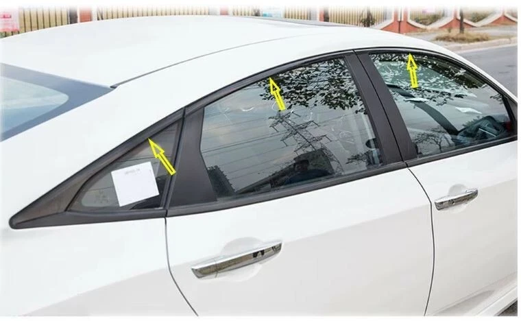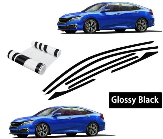 6 Pcs Chrome Delete Blackout Window Trim Glossy Black For 16-19 Honda Civic 10th Gen 4dr Sedan Made of premium quality KK Vinyl material, not easy to fall off. Gloss black makes the appearance of your car more superior and gorgeous. Manufactured according to the originals, it fits the car perfectly. Durable under any weather circumstances. Pre-cut shape for easy installation. Including : 6x Window Trim Stickers Material : High Quality KK Vinyl COLOR : Glossy Black Packaging : Packed in Foam bag Quality guaranteed Installation 1) Clean up the surface make sure no dirt or dust, then wait for completely dry. 2) Simply peel off one end of the decal, but do not peel all the way through. 3) Slowly attach the decal to the desire area to avoid air bubble. 4) Continue to attach the rest.