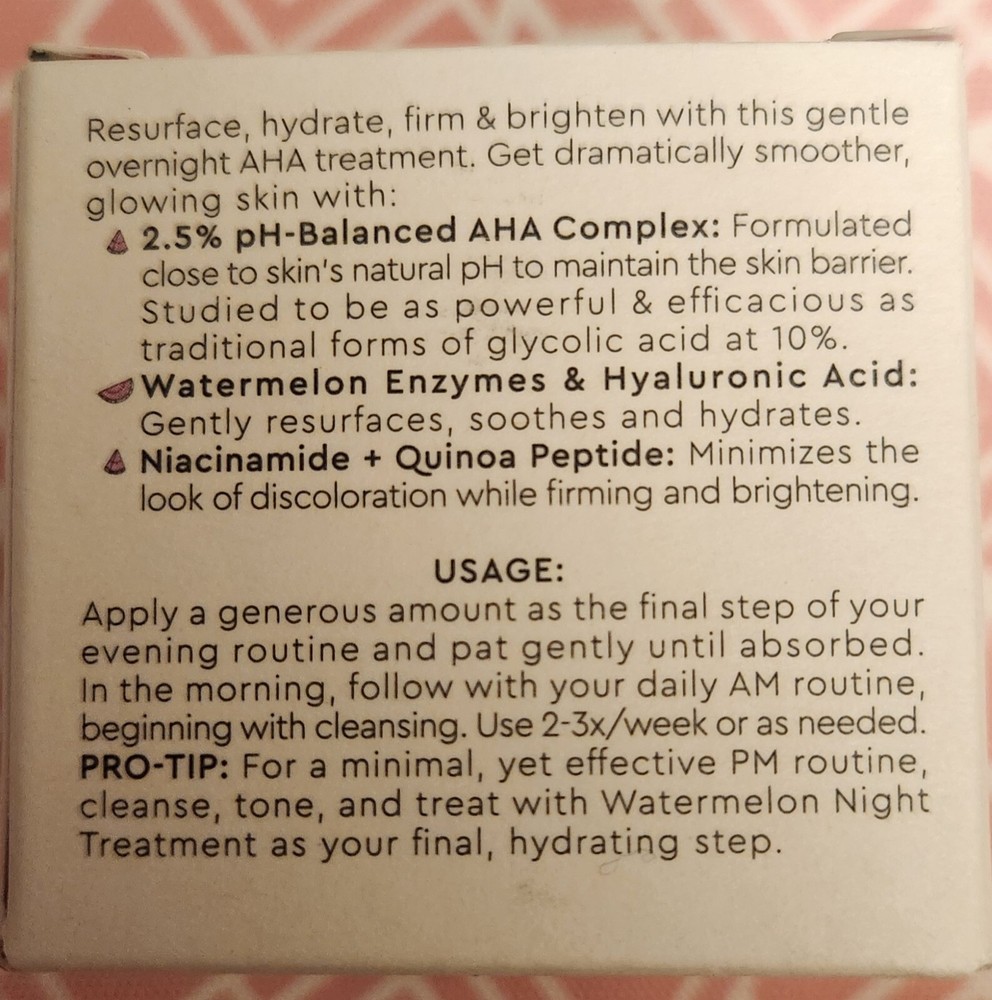 Glow Recipe Watermelon Glow AHA Night Treatment 60 ML / 2.02 OZ. New in Box Glass bottle Full size $40 retail