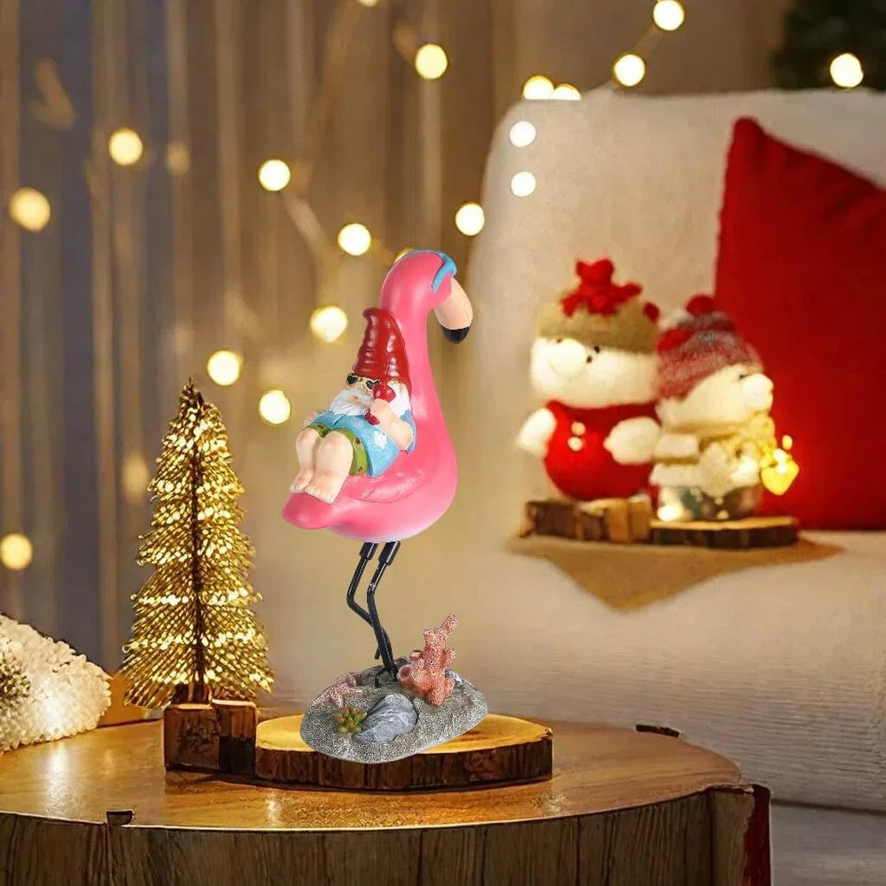 Unique Gnome & Flamingo Design: Our funny gnome, relaxing on a flamingo, adds imagination and charm to your garden. Gnomes are also believed to bring good luck, enhancing the ambiance of your outdoor space. Handcrafted with High-Quality Detail: Made from durable resin, each gnome is meticulously sculpted and hand-painted to capture every exceptional detail. Few variations may occur, making each piece unique. Perfect Size for Any Space: This figurine (6.1X3.3X8.5 inches, 0.9 lb) fits seamlessly into gardens, lawns, backyards, and ponds. It's also perfect for indoor decor on window sills, countertops, and entryways. Built to Endure: Our garden gnome decoration withstands all weather conditions. Crafted from rust-resistant resin and coated for added protection, it maintains its charm rain or shine. Ideal Gift for Any Occasion: Our gnome and flamingo statue makes a thoughtful gardening gift for Mother's Day, Easter, Christmas, birthdays, housewarmings, and more, delighting friends and family alike.